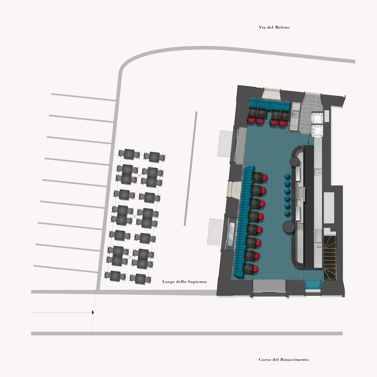 A dispetto della posizione, LIÒN non si rivolge a un target turistico: luci soffuse e superfici specchianti invitano all’interno di un locale sofisticato, che con il suo piacevole dehors si affaccia su Largo della Sapienza.
