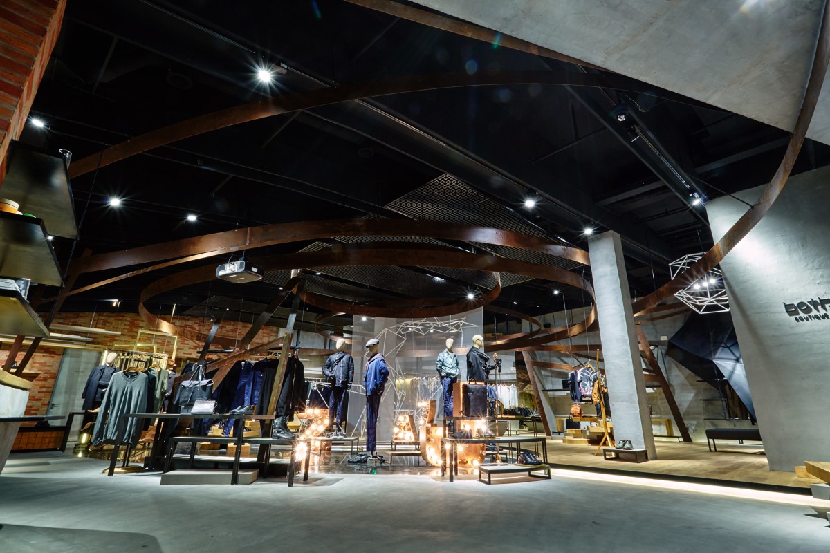 La filosofia del progetto della boutique è quella di un “ponte”, questo è il principio di azione e pensiero di Both, lo spazio che si manifesta dall’approccio “contrasto”. Al fine di essere collegato con il mondo di “Bridge”, Both vola avanti e indietro tutto il mondo, per portare cose interessanti, la visualizzazione spaziale della boutique prende forma da questa azione.