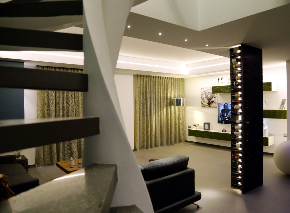 Il progetto realizzato riguarda un’abitazione su 2 livelli, dove il comune denominatore è l’interazione con gli elementi strutturali e gli arredi progettati. Come nella maggior parte dei progetti portati avanti dall’arch. Arnone, gli interni contengono degli arredi funzionali che caratterizzano la casa cercando di cogliere le esigenze del cliente e trasferendole in elementi progettati.