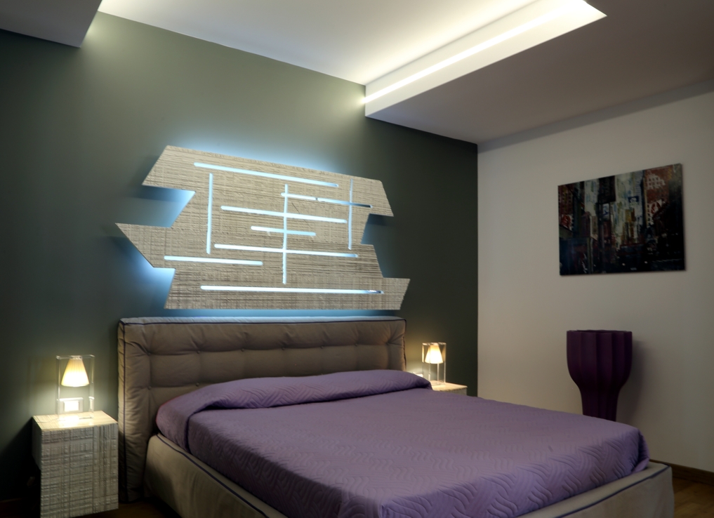In un progetto di interior un ruolo fondamentale lo ha l’illuminazione, curata nei dettagli, dove è stato usato un sistema filo contro soffitto, risultato molto efficace in termini di luminosità e che ha permesso di creare un segno luminoso continuo su parete/soffitto ed avere sempre luminosità indiretta, mentre per la stanza dedicata alla lettura sono stati ricavati dal contro soffitto 3 volumi che si intersecano e dove sono stati innestati dei faretti a binario che illuminano in maniera puntiforme o diffusa l’ambiente. Anche l’ingresso ha il suo valore aggiunto con il sistema Uso di Flos, inserito nel controsoffitto.