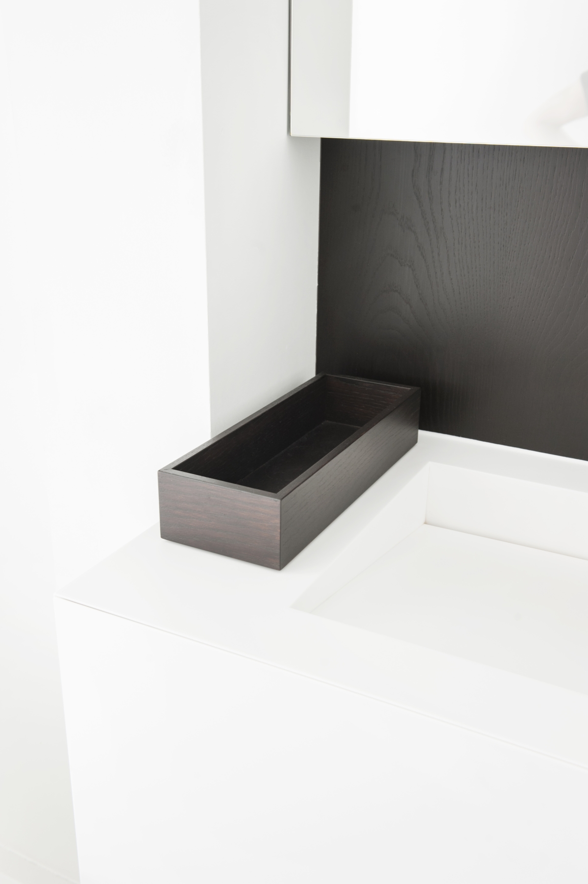 Elementi eseguiti in HI-MACS®: Piano di lavoro e cassetti, lavabi e cassetti.