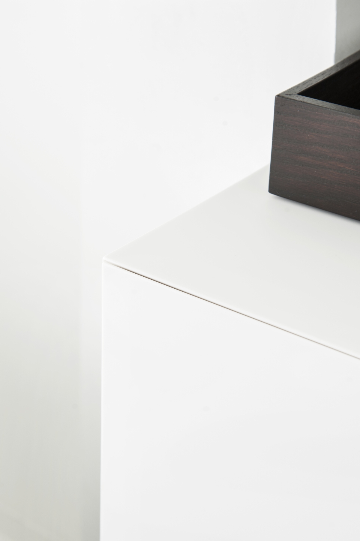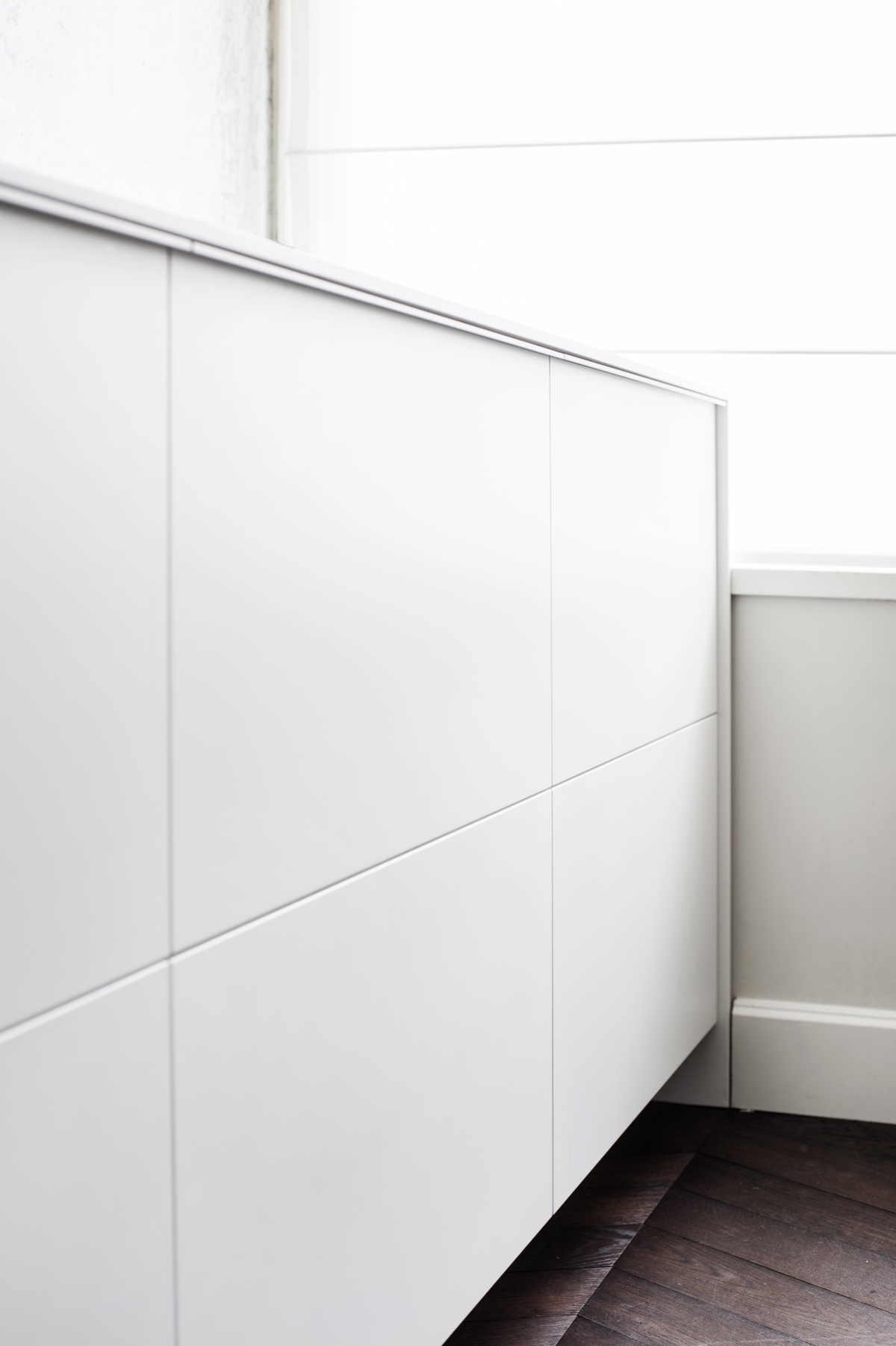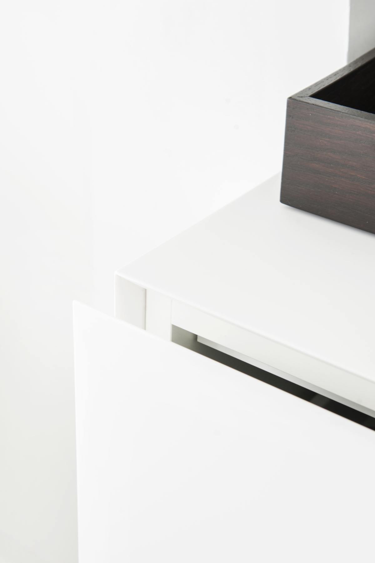 Anche le ante, la cui presenza è dichiarata solo da una rete di linee sottili, quasi invisibili, sono realizzate in HI-MACS®.