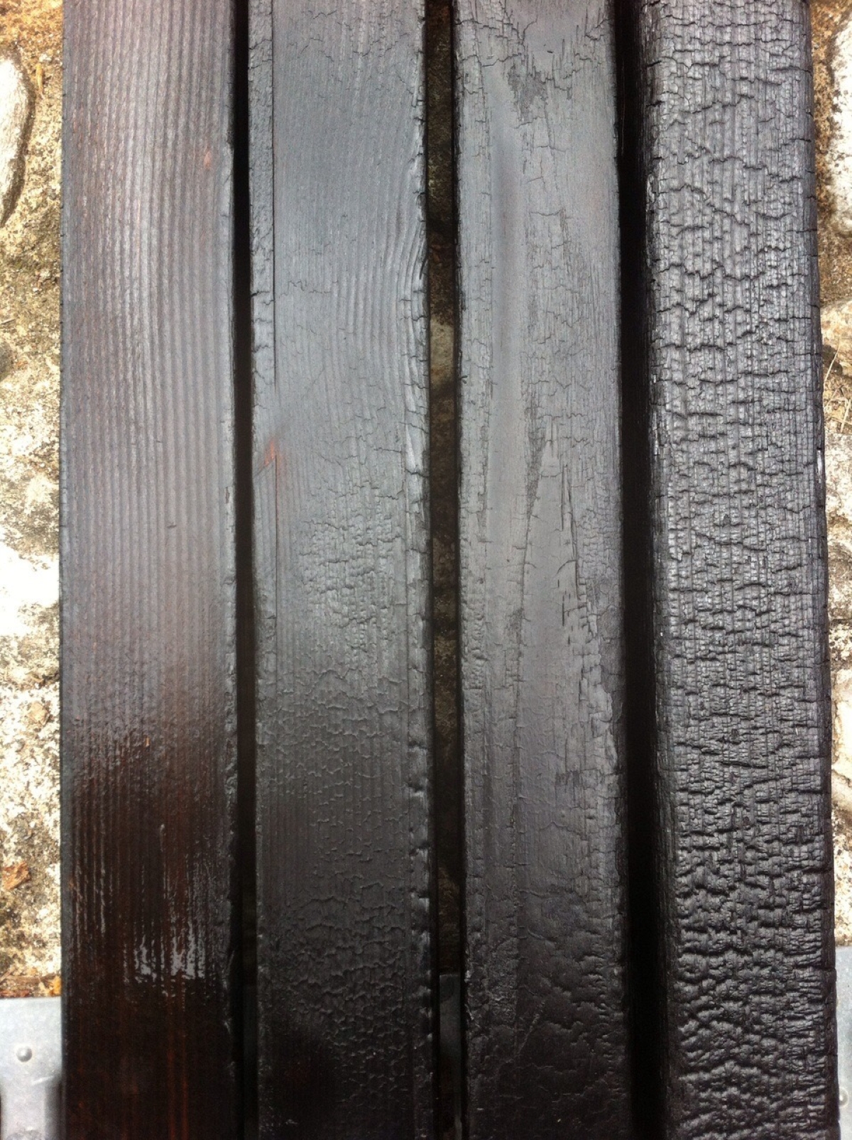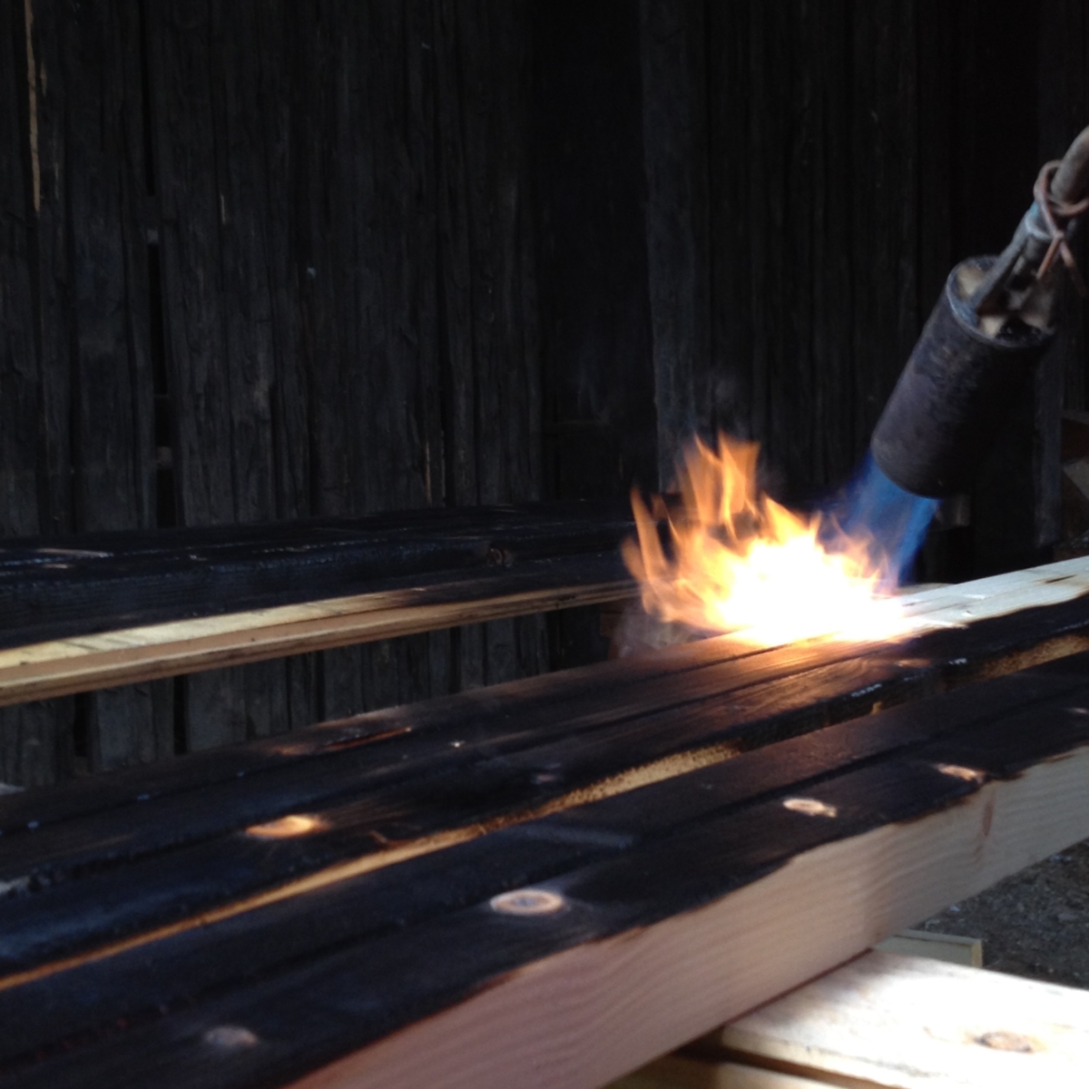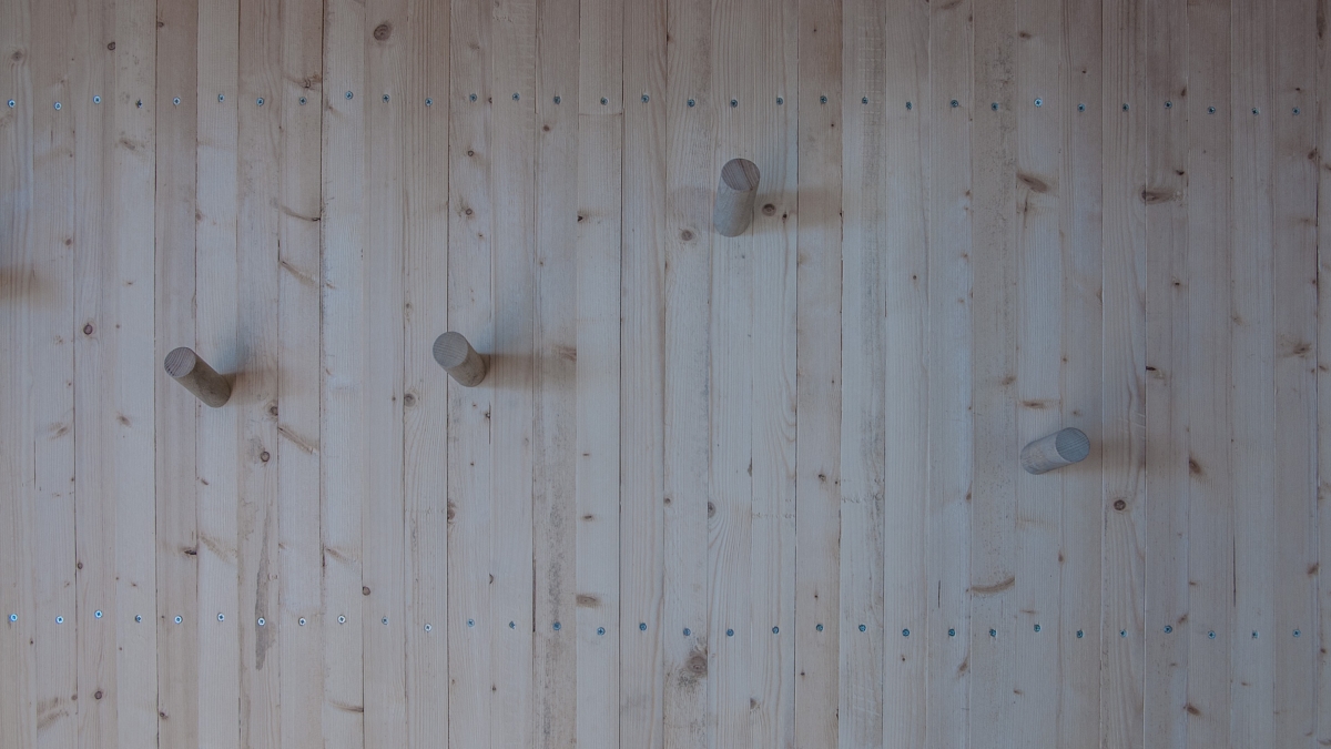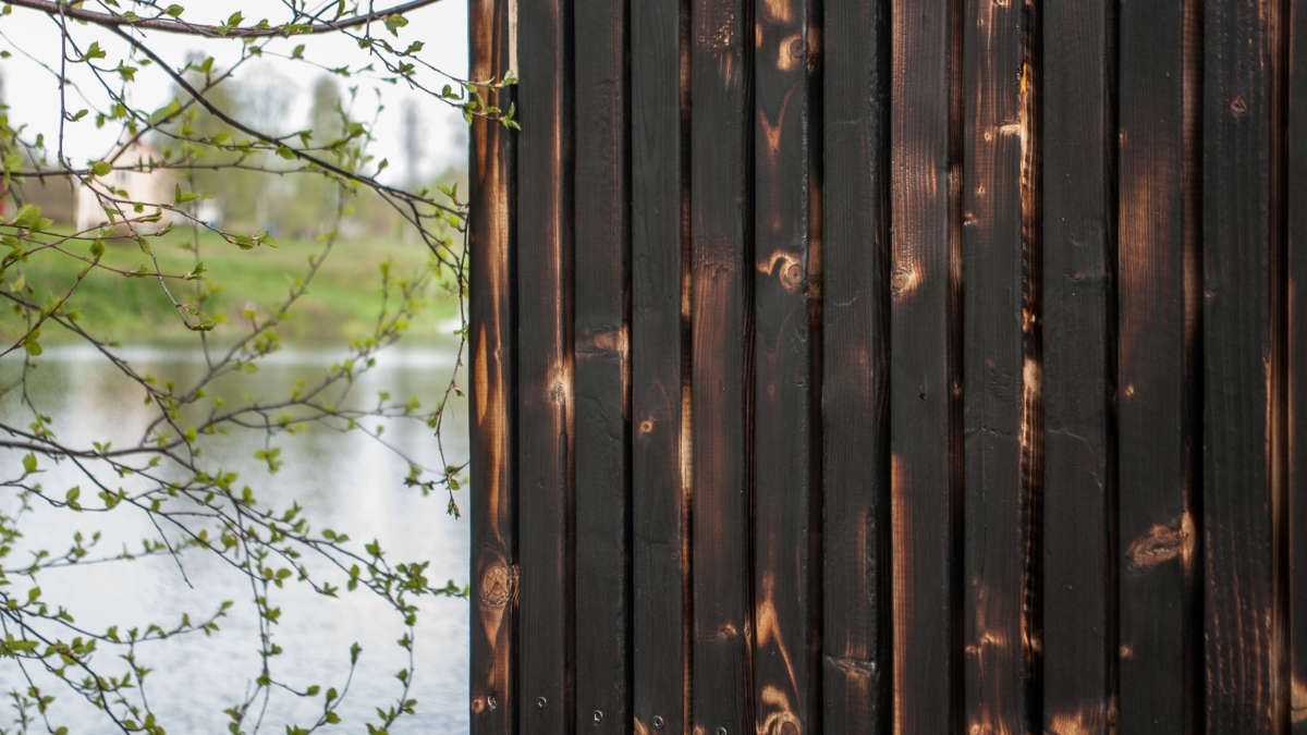 I listelli verticali in legno di abete sono stati trattati con l’impiego dell’antica tecnica dello Yakisugi che consiste nel bruciare la superficie ossidandola e rendendola inattaccabile da parassiti e resistente agli agenti atmosferici. Oltre ad evitare l’uso di prodotti chimici inquinanti, tale finitura permette di mettere in risalto la struttura del legno e allo stesso tempo la tonalità ottenuta aiuta a mitigare l’impatto visivo della struttura. Anche dal punto di vista cromatico il nuovo intervento diventa un elemento di tramite tra le scure acque del lago e la vegetazione alle sue spalle.