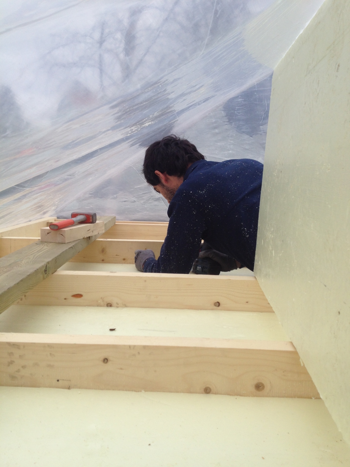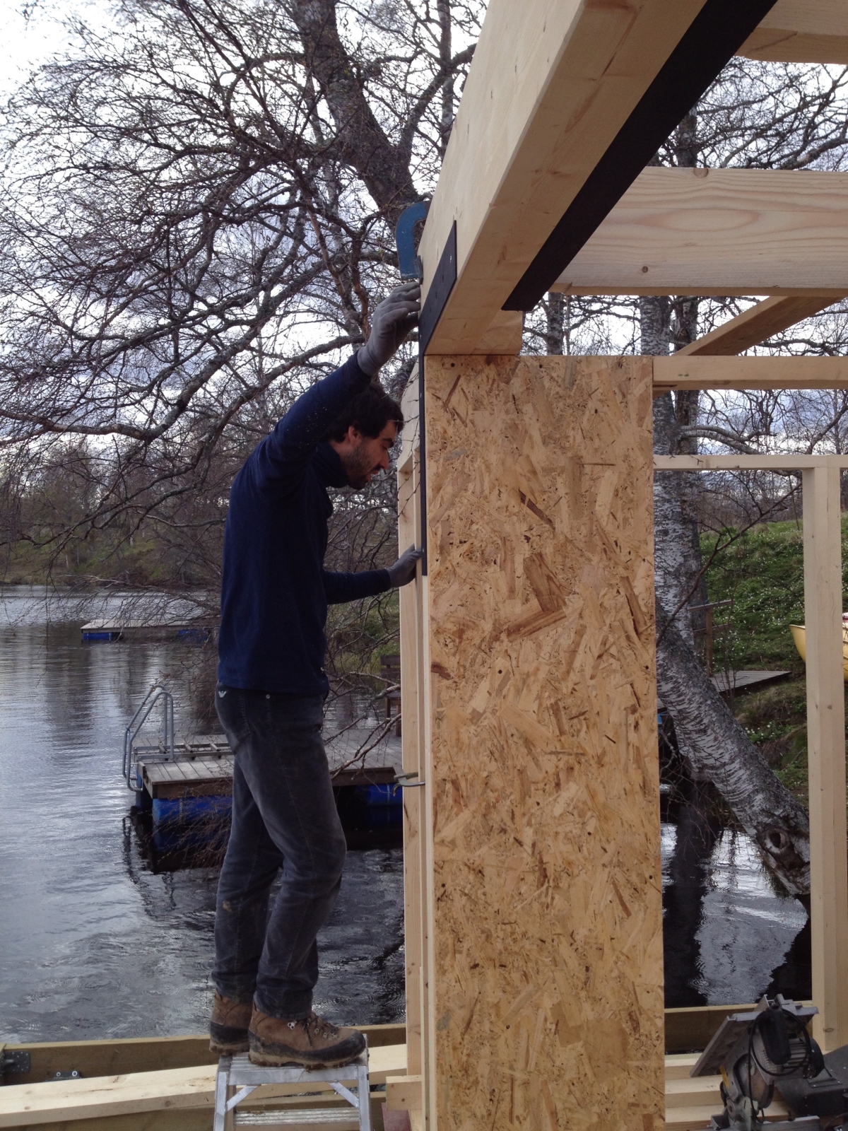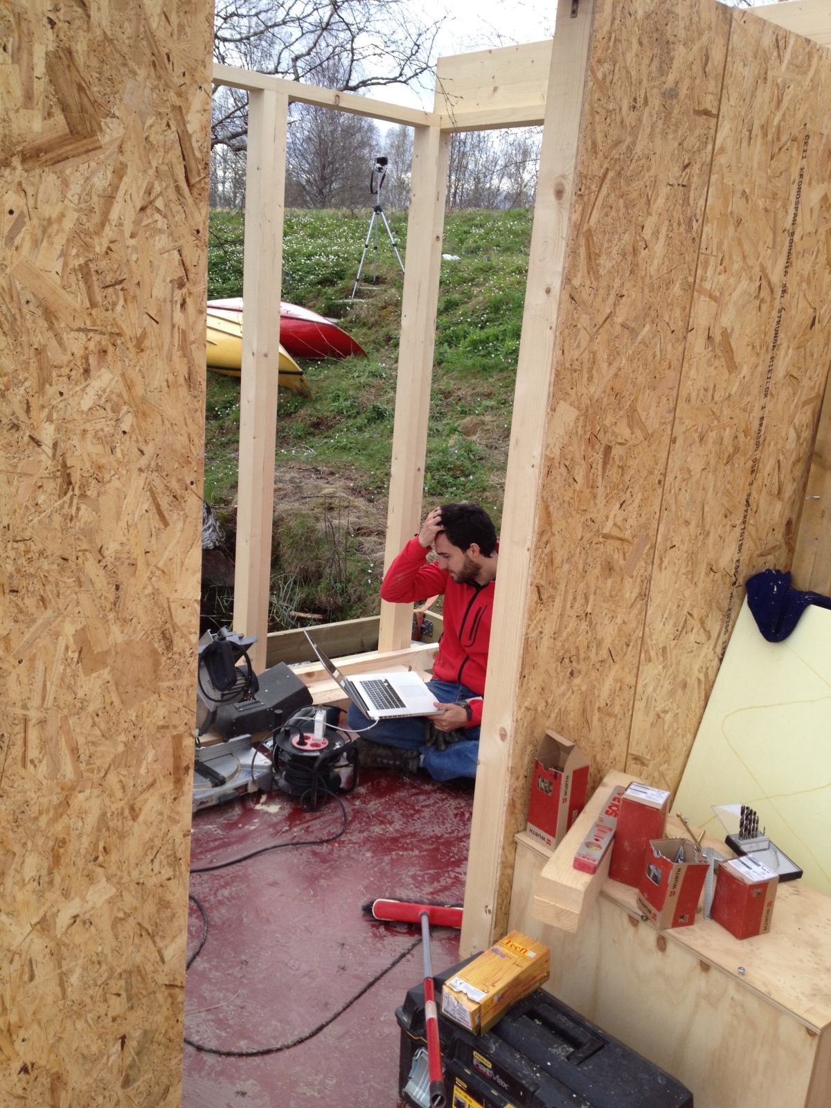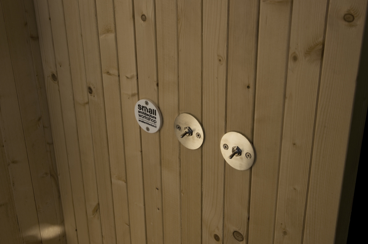 La sauna è stata costruita in poco più di due settimane, grazie alla prefabbricazione dei telai portanti che ne costituiscono la struttura. Questo ha permesso di ridurre il tempo di assemblaggio reso comunque difficile sia dalla conformazione del luogo sia dall’instabilità delle condizioni atmosferiche.