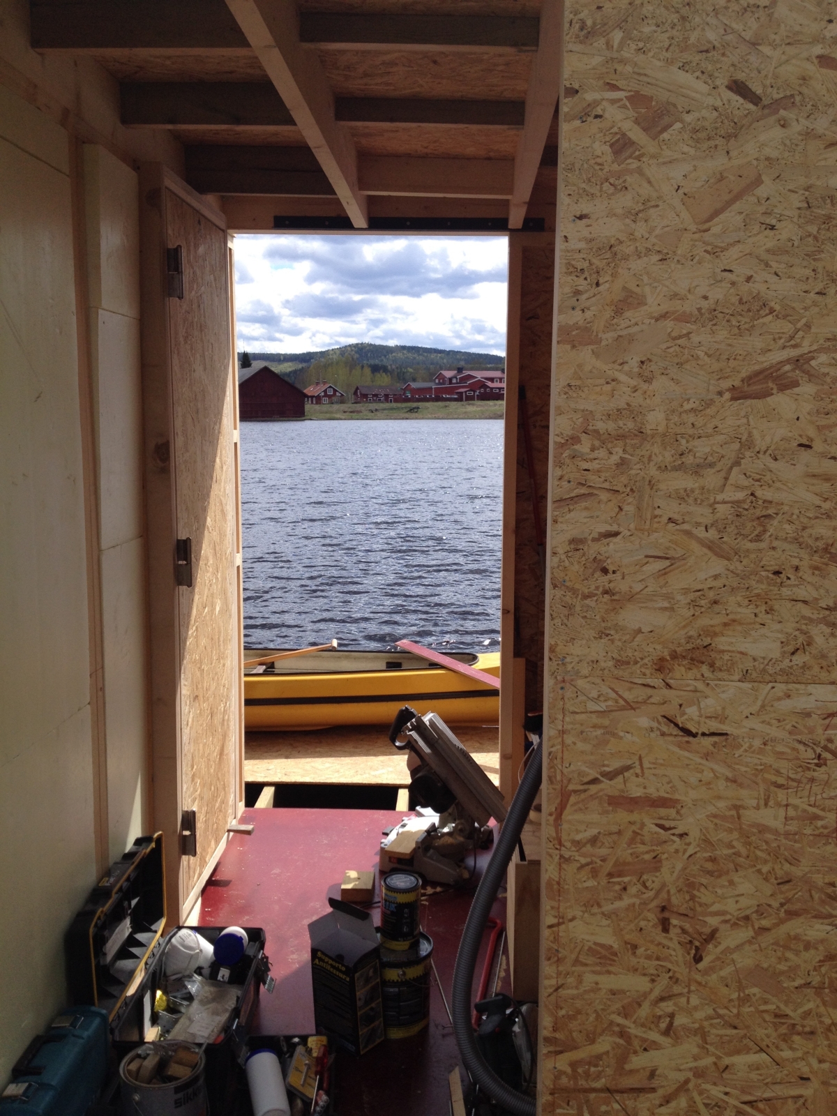 Oltre che spazio per il riposo e la contemplazione, la piattaforma galleggiante serve anche come attracco per canoe e piccole barche, andando a sostituire un vecchio pontile precedentemente installato nella stessa posizione. L’ambiente interno, in grado di ospitare fino a otto persone contemporaneamente, è separato dall’esterno tramite una zona filtro coperta utilizzata come spogliatoio e deposito per la legna.