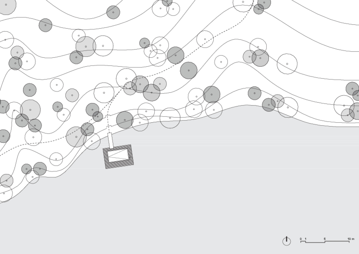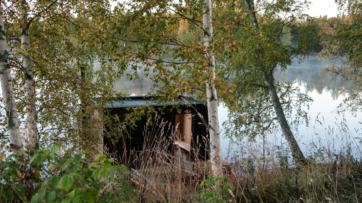 La scelta di costruire su una piattaforma galleggiante è stata suggerita dal luogo stesso, caratterizzato da una forte pendenza del terreno verso il lago e dalla presenza di un fitto bosco di betulle che avrebbero reso impossibile costruire vicino all’acqua senza interventi troppo invasivi sul terreno. In questo modo oltre a rispettare la natura del luogo, la sauna diventa un ponte tra la terra e l’acqua e si rapporta in egual modo con entrambi gli elementi.