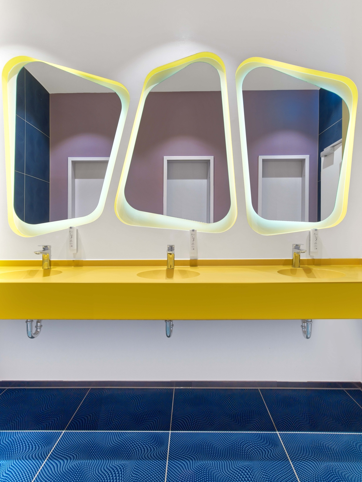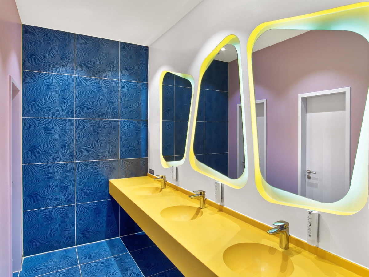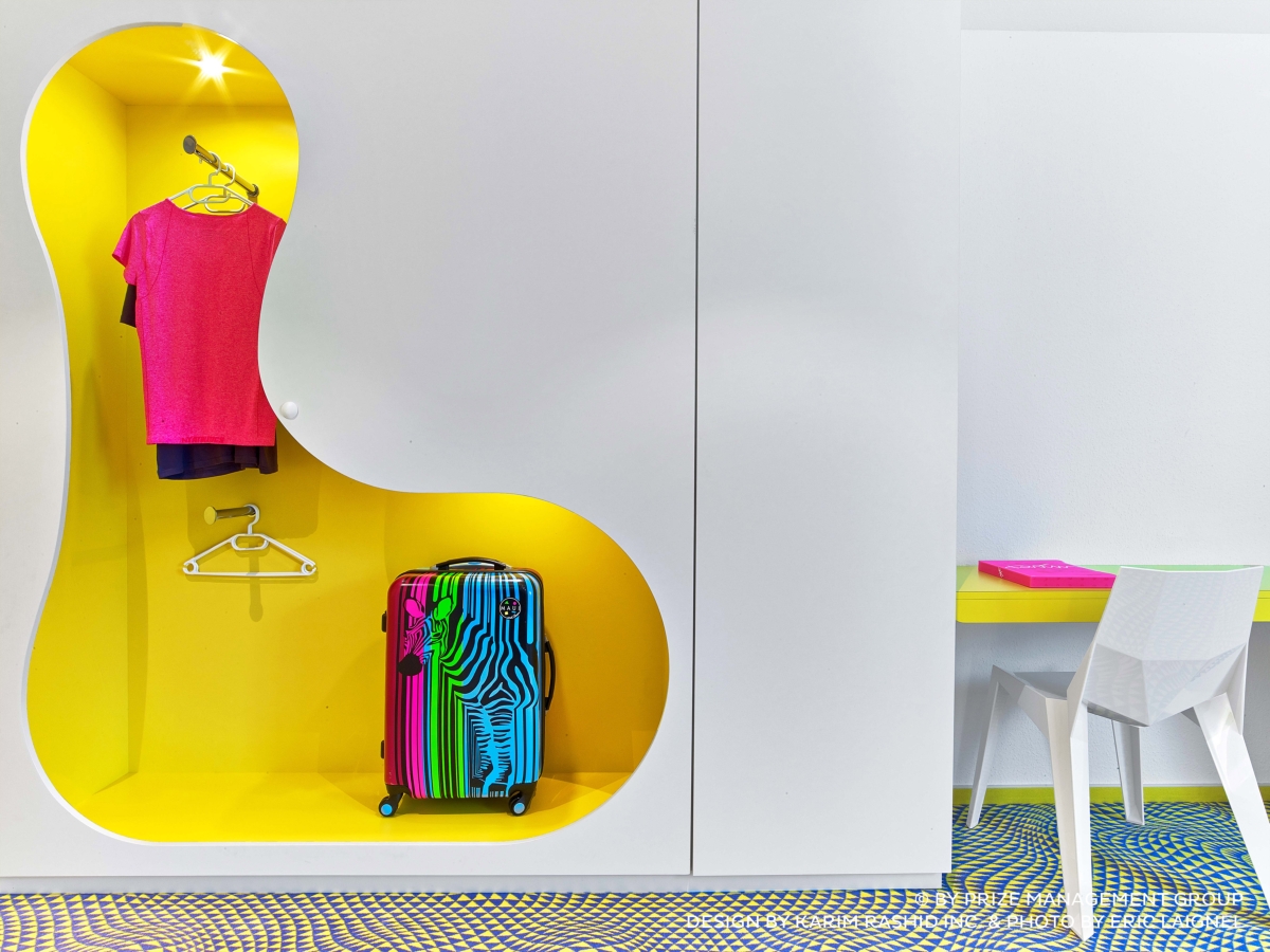 Anche in questo caso, l’interior design è stato affidato a Karim Rashid che ha arredato le 212 stanze, la zona ristorante e lounge all’insegna di design, tecnologia e funzionalità. Lo stile inconfondibile del designer americano, caratterizzato da forme organiche e colori brillanti come rosa, viola, giallo e bianco, crea un ambiente moderno e anticonvenzionale.