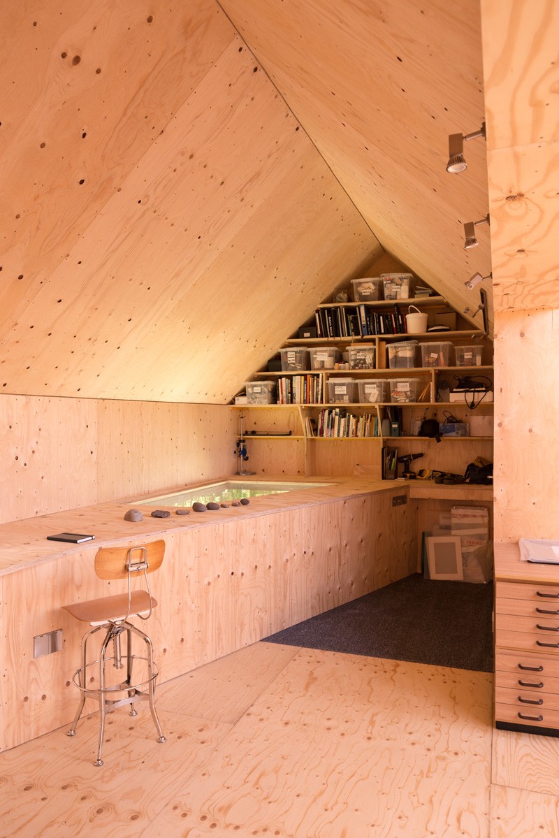 Strutturalmente lo studio è stato progettato per resistere alle condizioni estreme del sito, e lo zinco grezzo potrà invecchiare con dignità, rimanendo ben armonizzato con il paesaggio nel tempo. L’interno è più accogliente e pulito possibile, per agevolare il lavoro dell’artista.