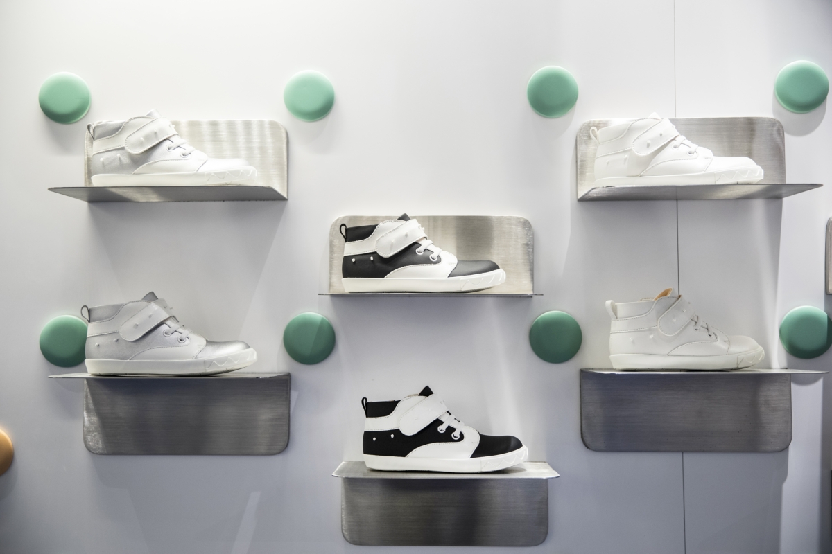 I punti magnetici hanno la funzione di rendere l’esposizione delle scarpe magicamente libera, mentre tutta la parte bianca delle tavole può essere disegnata dai bambini. Questo potrebbe aiutare a coltivare la loro creatività.