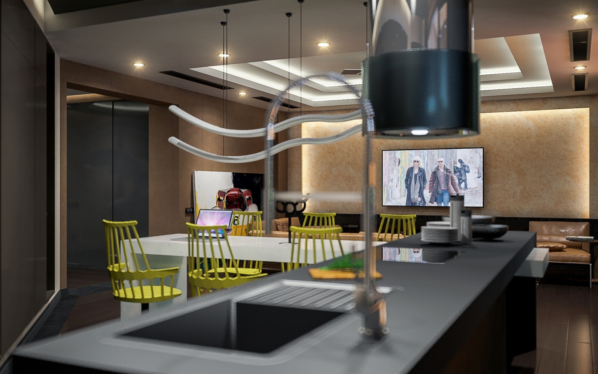 Lo studio Stipfold di base in Tiblisi, Georgia, ha progettato questa penthouse per assecondare il desiderio dei giovani proprietari di avere un appartamento per feste e per ricevere gli amici.