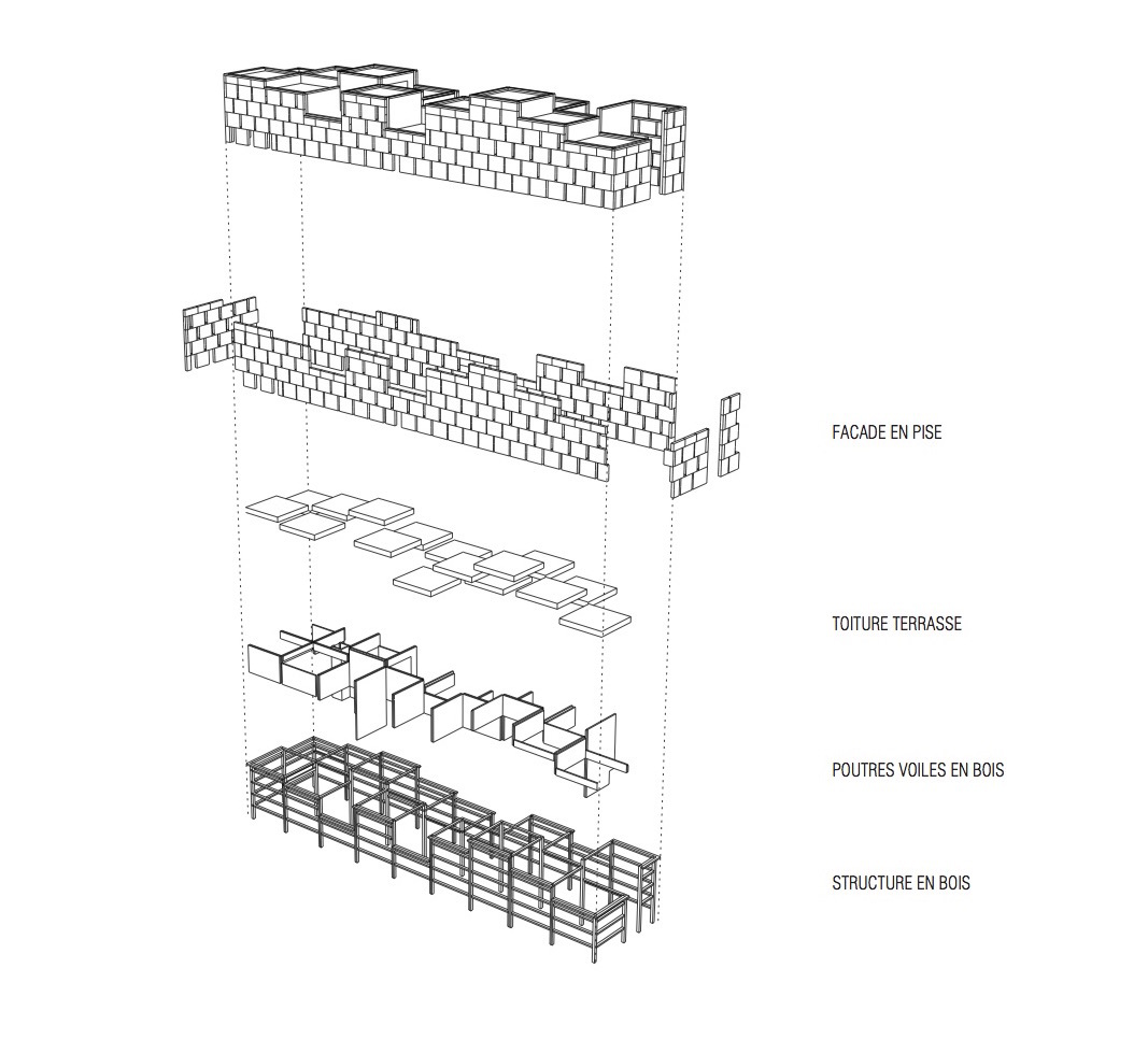 Il mattone è collocato all’interno di enormi pannelli prefabbricati in legno, che vengono poi montati su un telaio in acciaio. Questo metodo si adatta all’uso di materiali tradizionali con metodi costruttivi industrializzati. Alla fine di Expo Milano, i pannelli saranno smontati e riutilizzati.