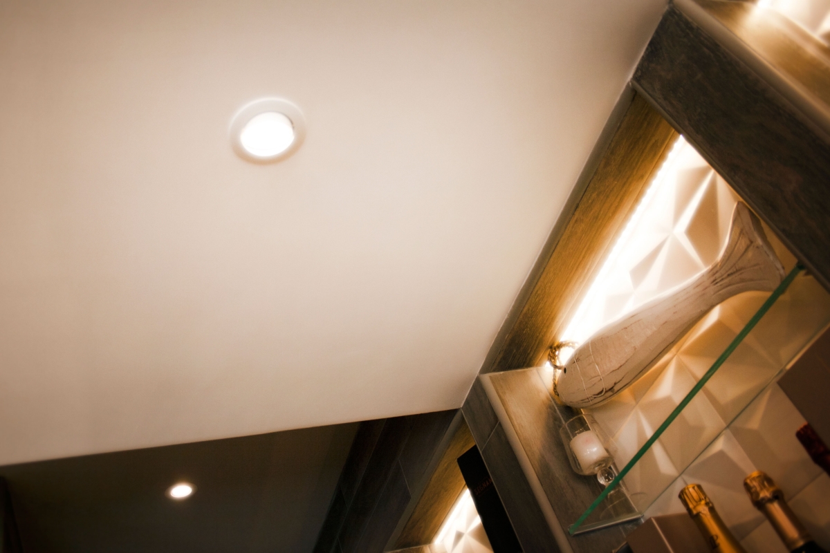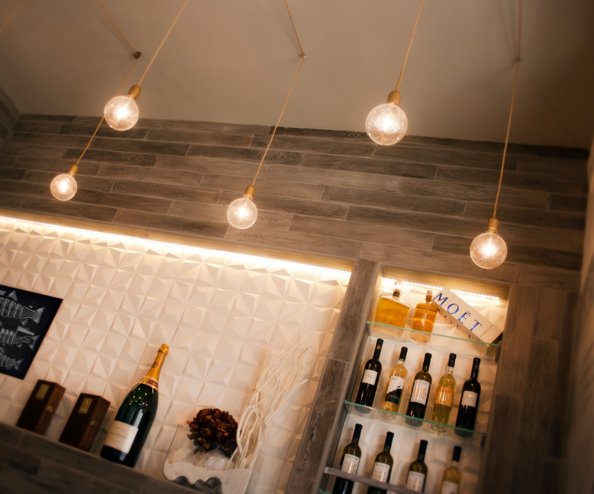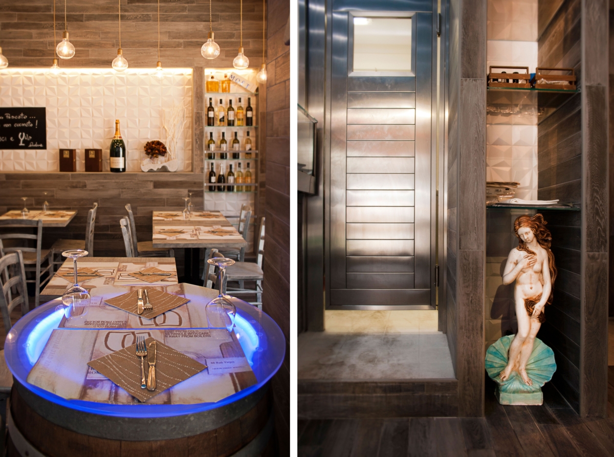 L’illuminazione è diffusa e regolabile con dimmer in modo da proporre le atmosfere appropriate come se fossimo all’aperto. Il progetto punta a dare al cliente/spettatore un’esperienza unica dove l’arte e l’architettura si fondono in un concetto “ancestrale” di connubio tra cibo e natura.