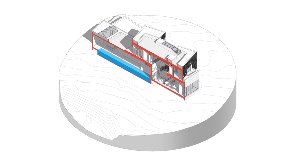 La struttura è stata realizzata attraverso un approccio dal basso verso l’alto; le forme sono emerse dopo aver deciso come gli spazi con specifiche funzionalità sarebbero stati disposti in casa.