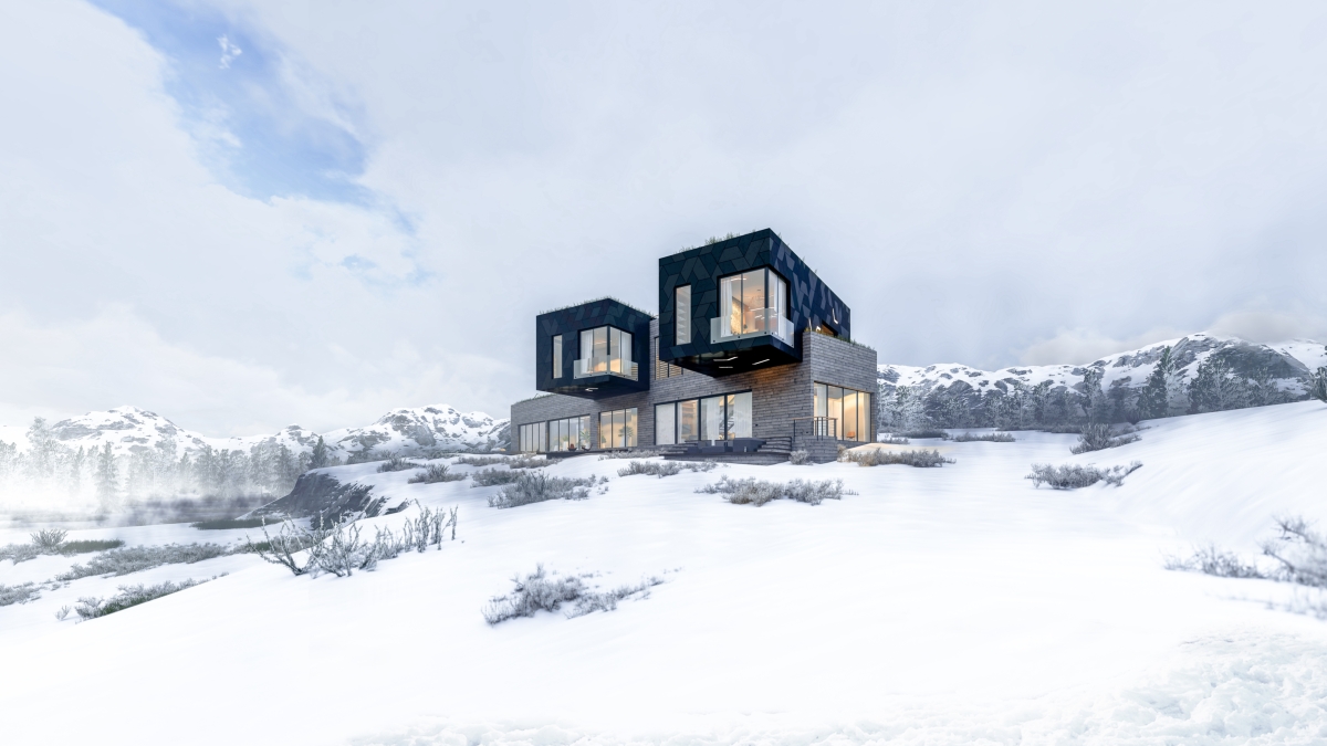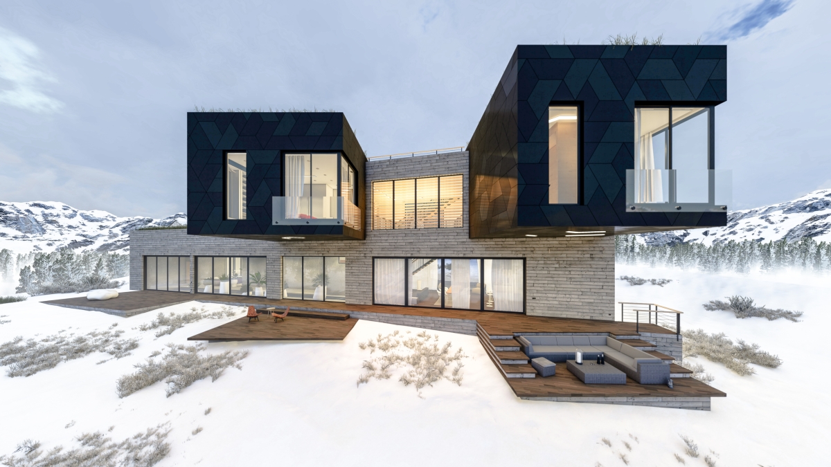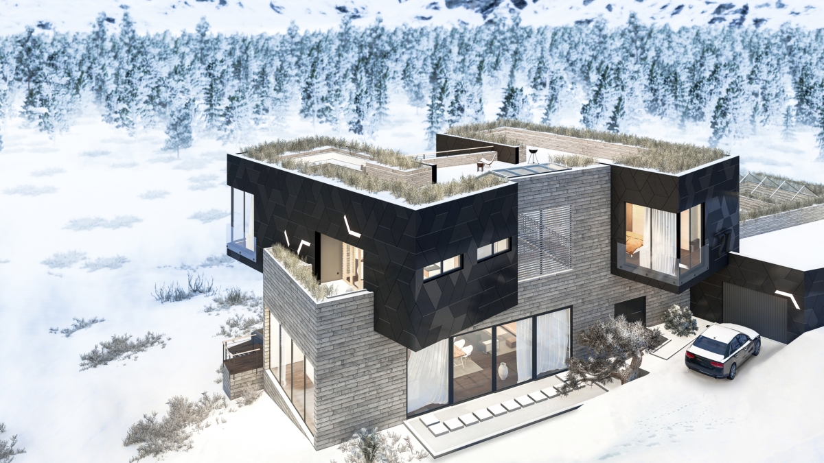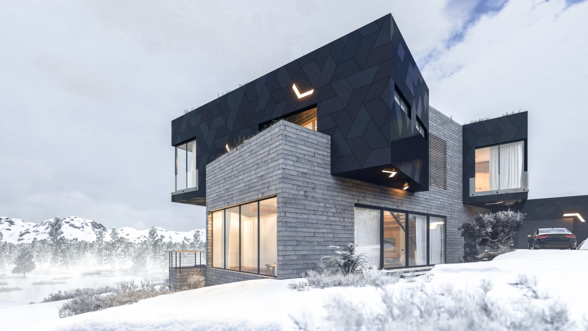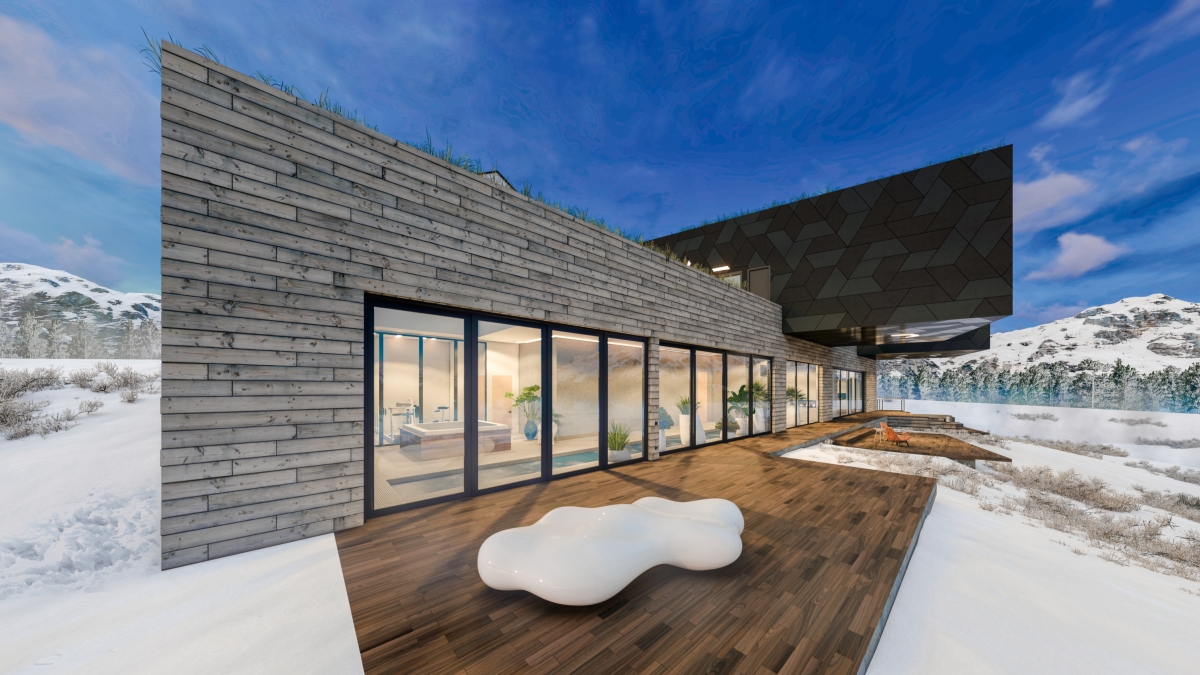 Poiché sono rivestite con lo stesso materiale, le terrazze in legno sembrano quasi diventare pareti. In contrasto con il primo piano, i moduli del secondo piano sono disposti su un’angolazione diversa e sono coperti con fogli di metallo nero. Ospitano anche ampi spazi esterni per il relax e l’interazione con la natura. Le porte di vetro dei blocchi del secondo piano sono collocate negli angoli di ogni camera da letto, di fronte alla città.