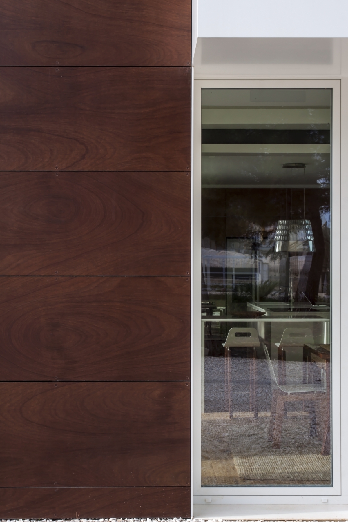 Il rivestimento della villa PNK è stato progettato come una facciata ventilata, ricoperta in Parklex®, un pannello stratificato in legno naturale, ignifugo, a elevata durabilità nel tempo.