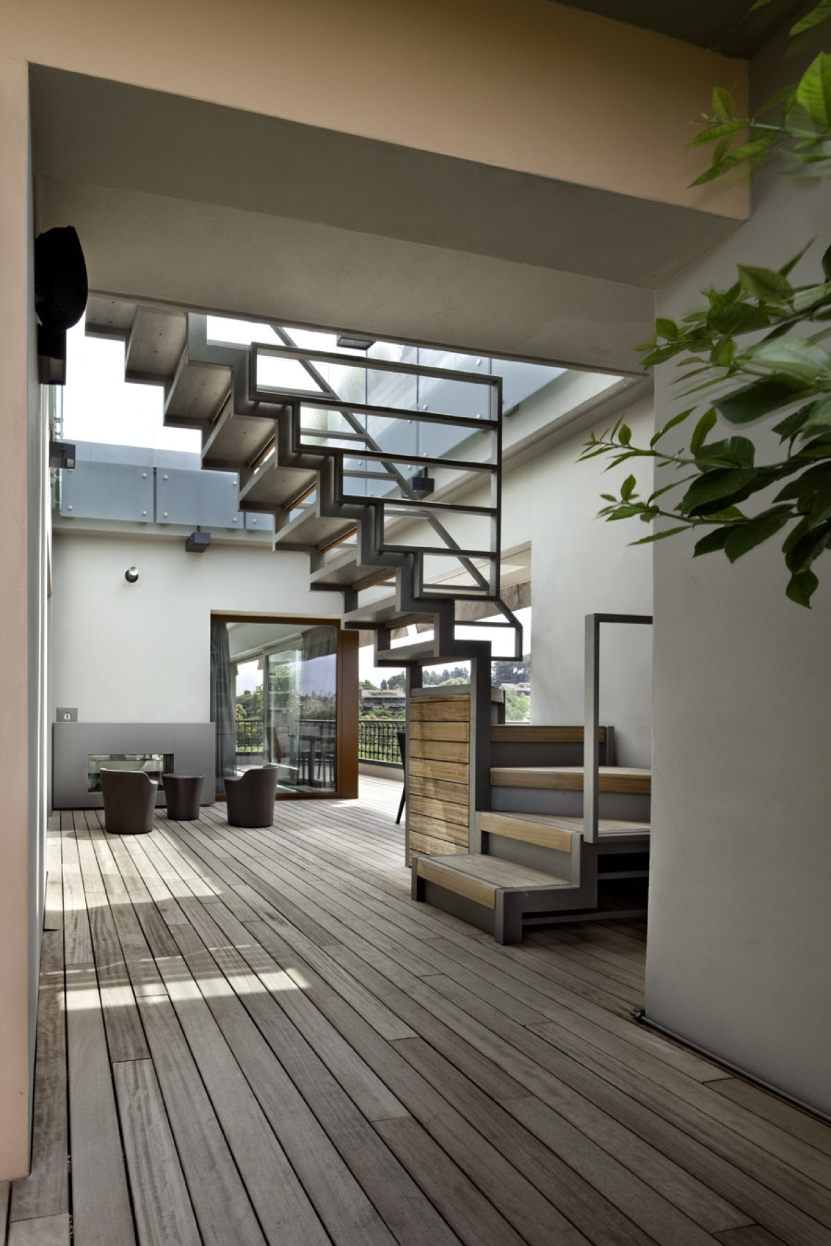Riqualificazione di un attico romano Westway Architects, vista della scala esterna dal terrazzo superiore