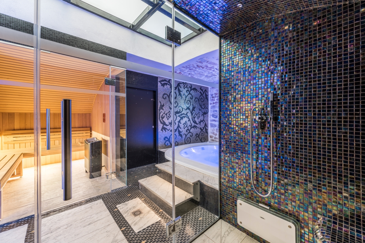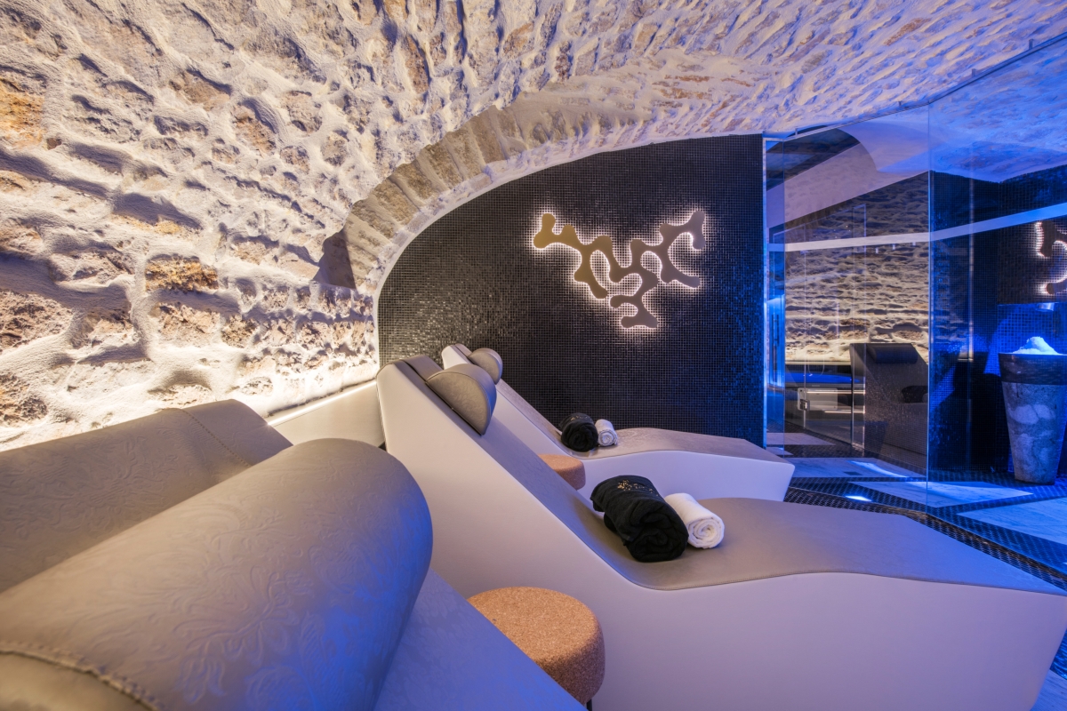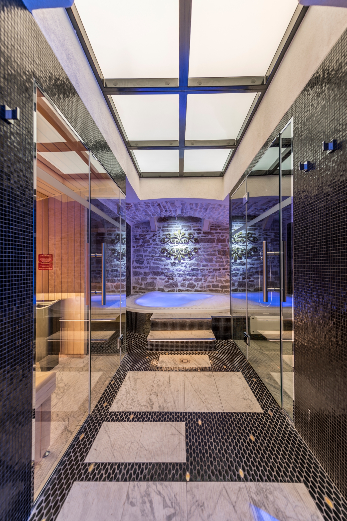 Nell’interrato la Proprietà ha voluto realizzare la zona più pregiata del centro benessere, nonostante le difficoltà tecniche e costruttive che lo spazio presentava. L’interrato si contraddistingue infatti per la sua copertura a volta ed è completamente realizzato in pietra.