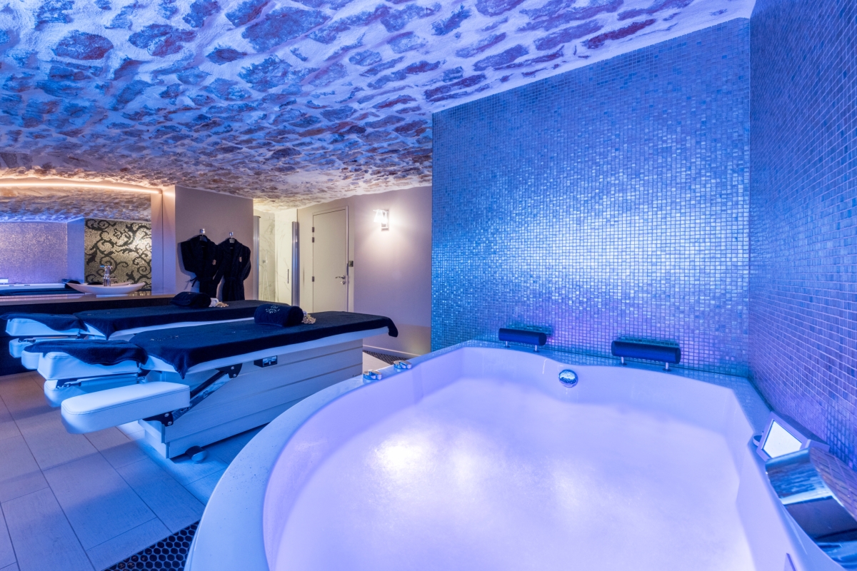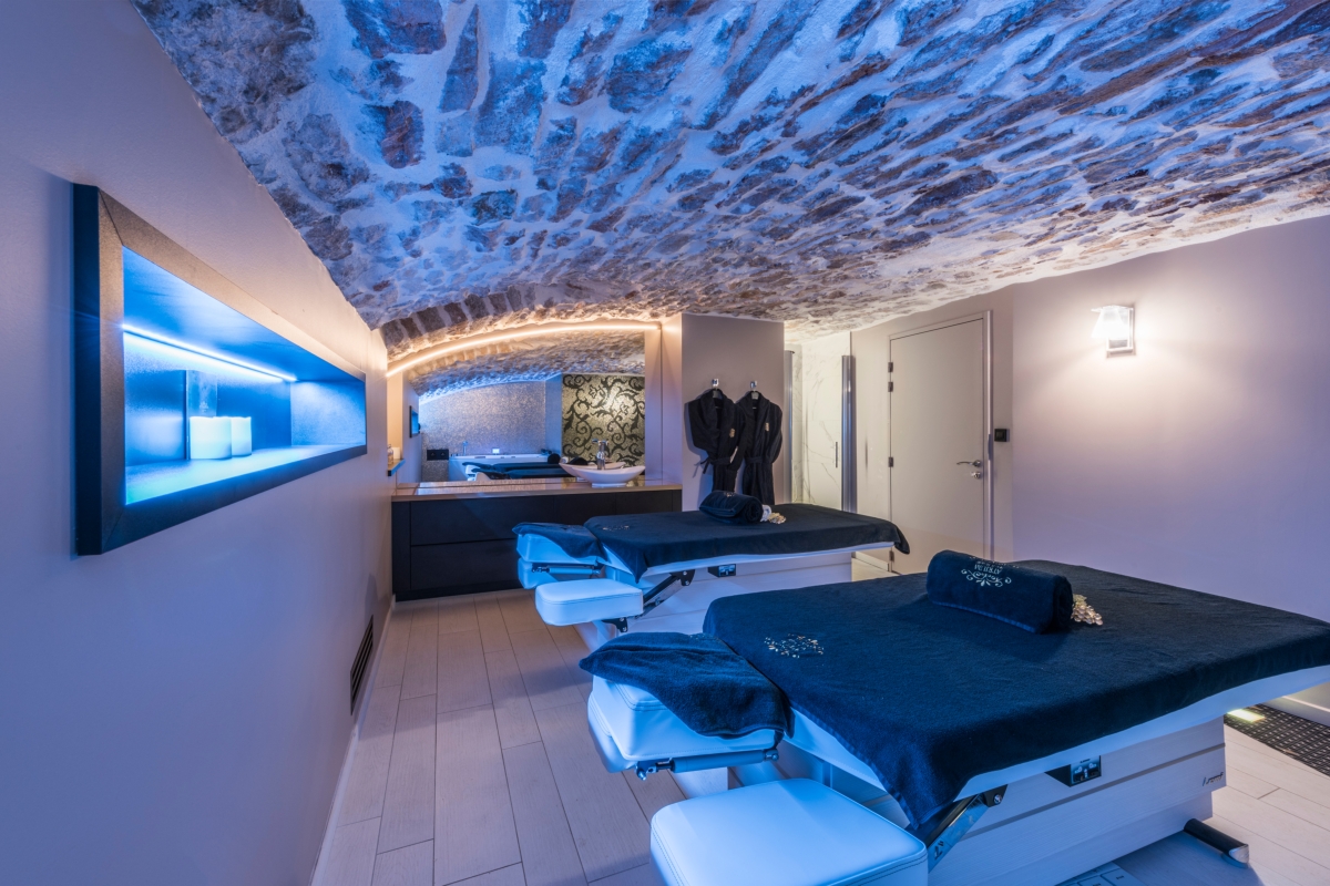 L’area SPA occupa uno spazio di circa 270 metri quadri. La zona umida comprende una sauna finlandese e un bagno a vapore, quasi interamente vetrati; troviamo poi una zona idromassaggio con doccia emozionale e un’ area relax. Per l’area trattamenti sono state invece ricavate due cabine singole e una di coppia. Completa l’ambiente un piccolo angolo tisaneria il cui mobile sembra fluttuare nell’aria, grazie ad una illuminazione posta nella parte sottostante.
