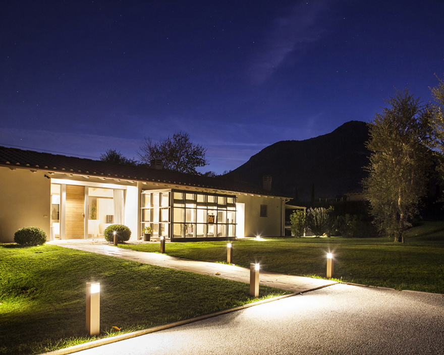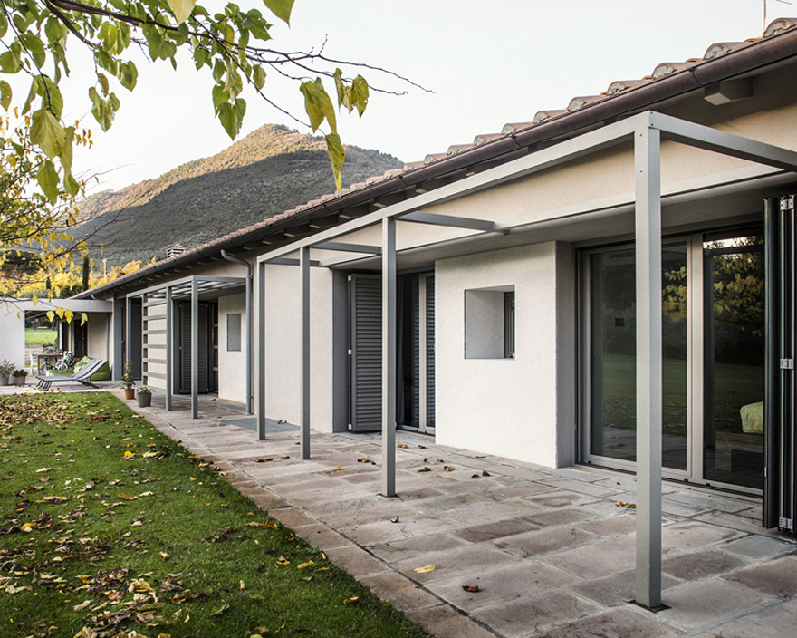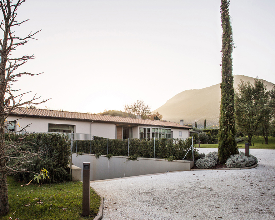 Il corpo principale richiama il profilo dell’archetipo per eccellenza della casa. All’interno la zona living e la zona notte, poste sullo stesso livello, si articolano secondo il concetto dell’open space. Lo spazio esterno in stretta relazione con l’ambiente interno, diventa l’elemento protagonista, attraverso un continuo dialogo visivo.