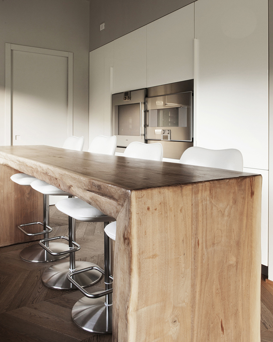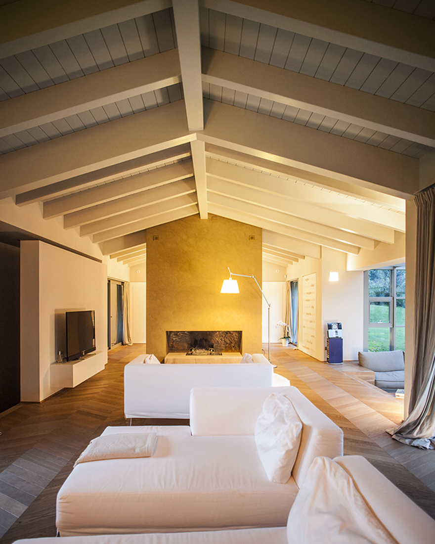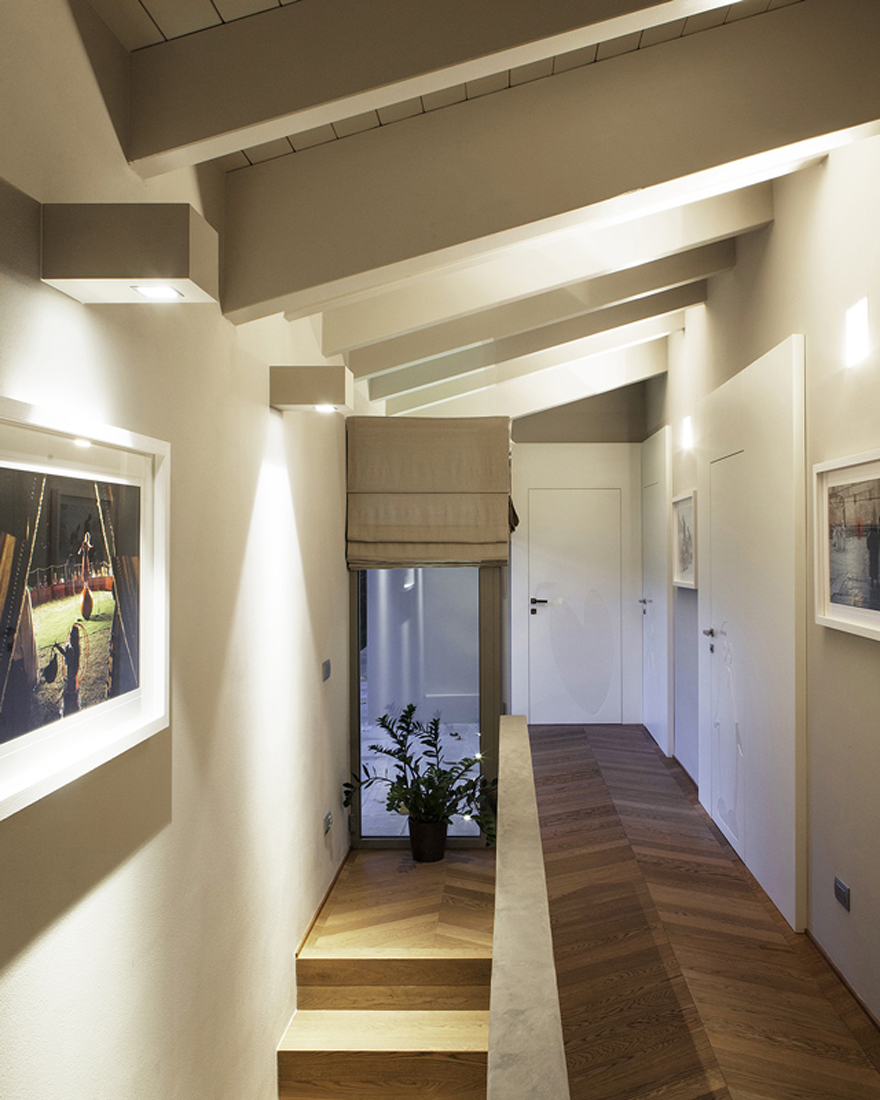 La zona living e la zona notte sono poste sullo stesso livello, si articolano secondo il concetto dell’open space.