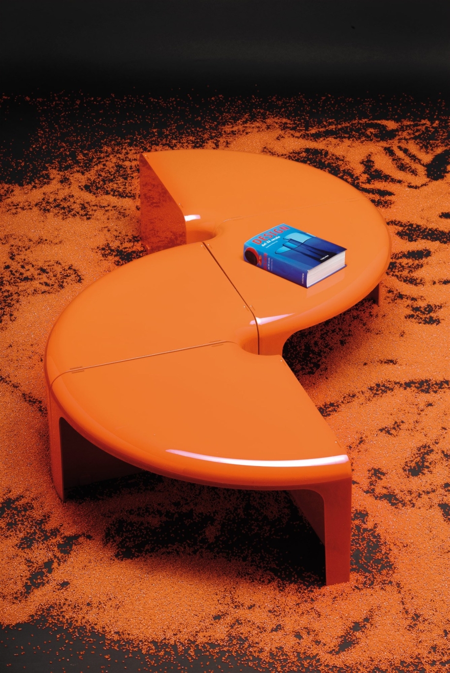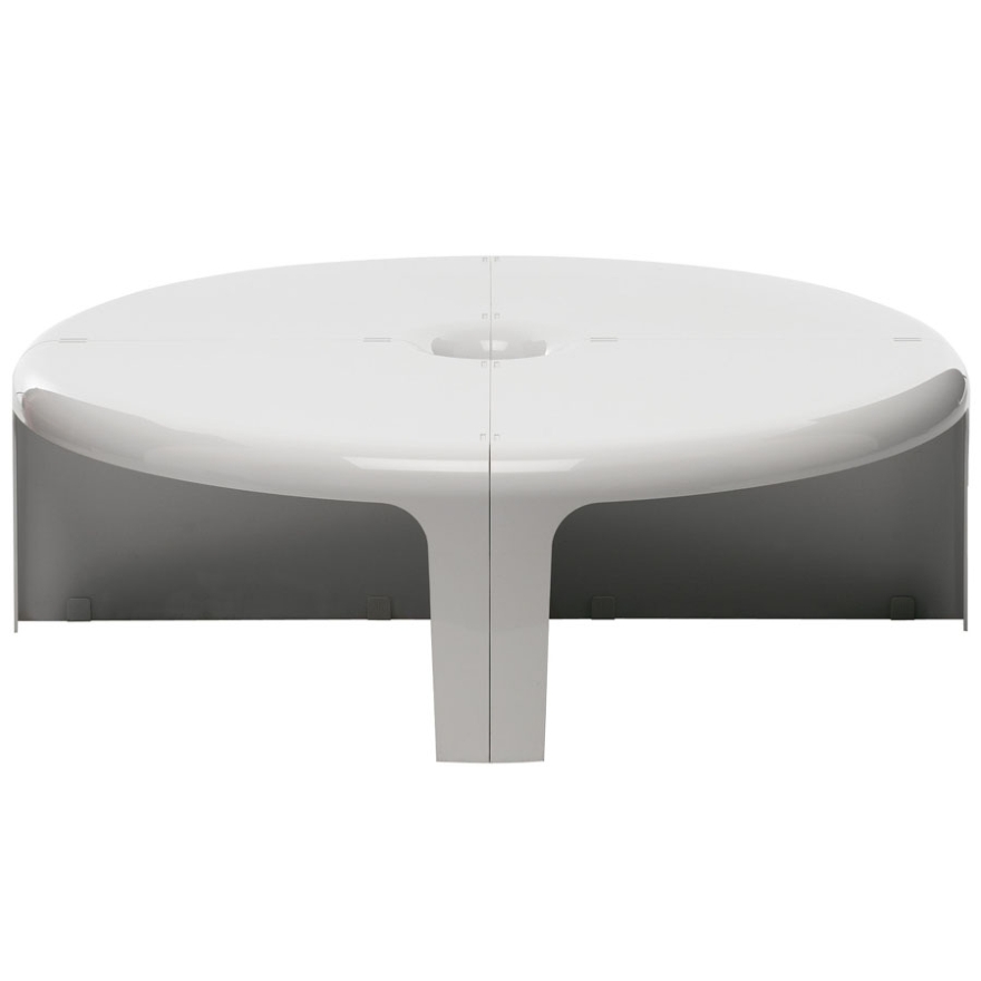 Questo bellissimo tavolino trasformabile rotondo con i suoi 4 pezzi modulari è prodotto attualmente da B-Line in vari colori, ed è incluso nella collezione permanente di design del Museum of Modern Art di New York. Un’icona nella storia italiana del design del 20° secolo.