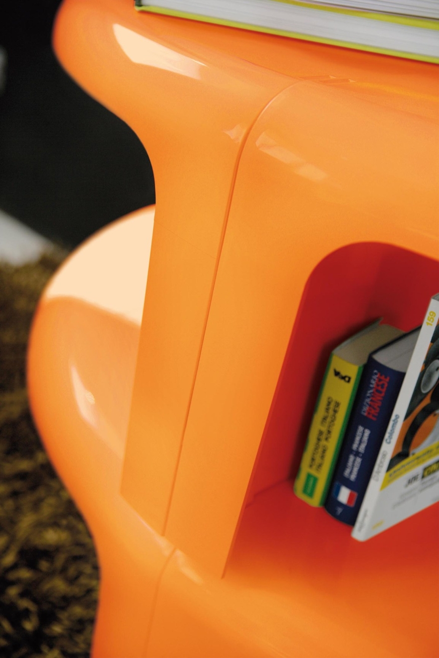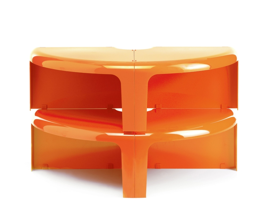Realizzato in ABS stampato ad iniezione, è formato da quattro moduli identici che, accostati o sovrapposti tra loro, permettono di “giocare” con le forme e con la connotazione. Il tavolino trasformabile 4/4 infatti, può essere utilizzato come tavolino e come libreria anche nei contesti più disparati, può assumere la classica forma tonda, a semicerchio, a C, ma può anche diventare lungo e ondulato.