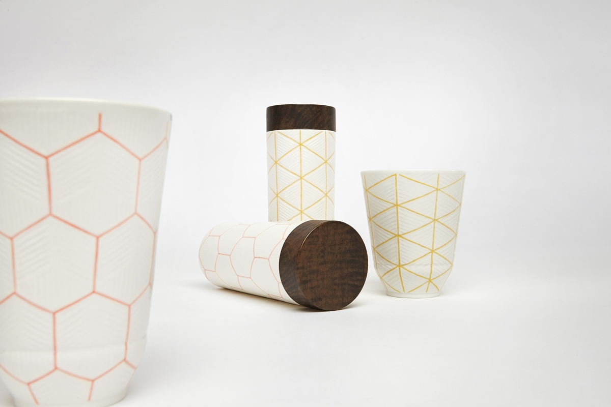Le forme sono sempre essenziali: cilindri smussati, caraffe tronco-coniche, ciotole semisferiche dalle geometrie rigorose appena ammorbidite dalla necessità di un utilizzo.