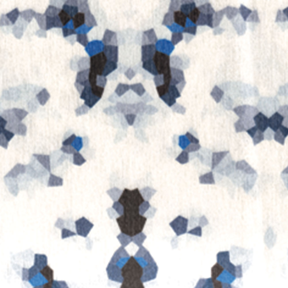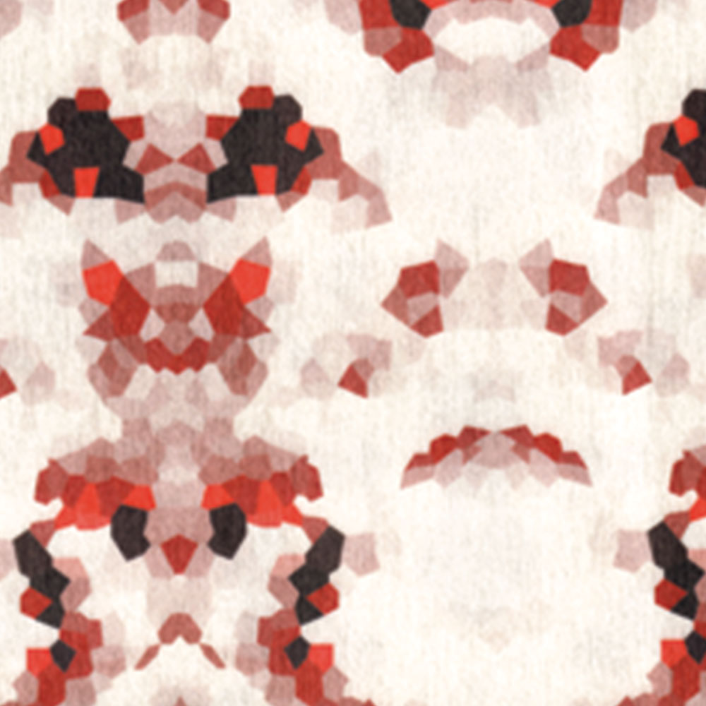 La texture prende spirazione dalla fusione della pelle di serpente ridisegnata con la tecnica del caleidoscopio: un effetto ottico davvero insolito e nuovo, che genera molteplici strutture simmetriche e multicolore.
