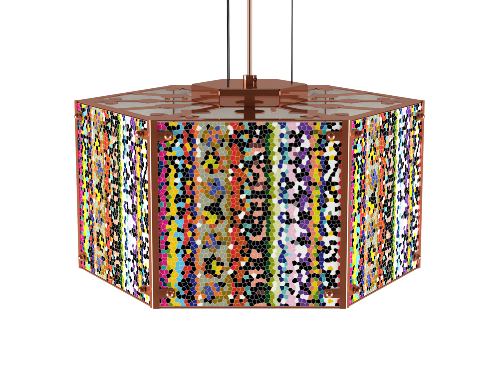 La flessibilità oggettiva di Metissage, data dalla modularità, sta anche e soprattutto nella possibilità di scegliere il disegno del vetro, è possibile progettare il proprio pattern personalizzato ad hoc per la propria lampada per il proprio spazio e piacere.