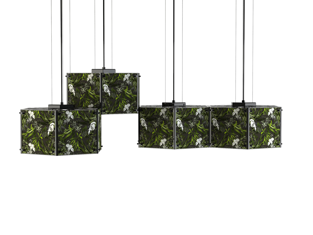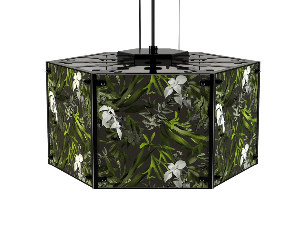 L’aggiornamento e l’attualizzazione della lanterna, musa ispiratrice a livello formale, deriva dal sofisticato effetto decorativo del vetro stampato in digitale nello specifico sublimazione.