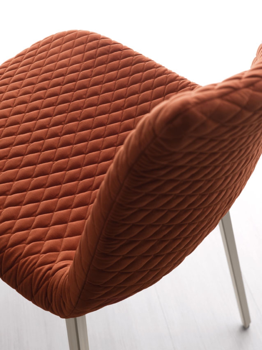 La particolarità di questo rivestimento è la morbidezza, il tocco vellutato e, soprattutto, la trapuntatura ad effetto 3D ottenuta da un accoppiamento del tessuto trapuntato creando volutamente dei rigonfiamenti direttamente su un supporto morbido tipo dacron.