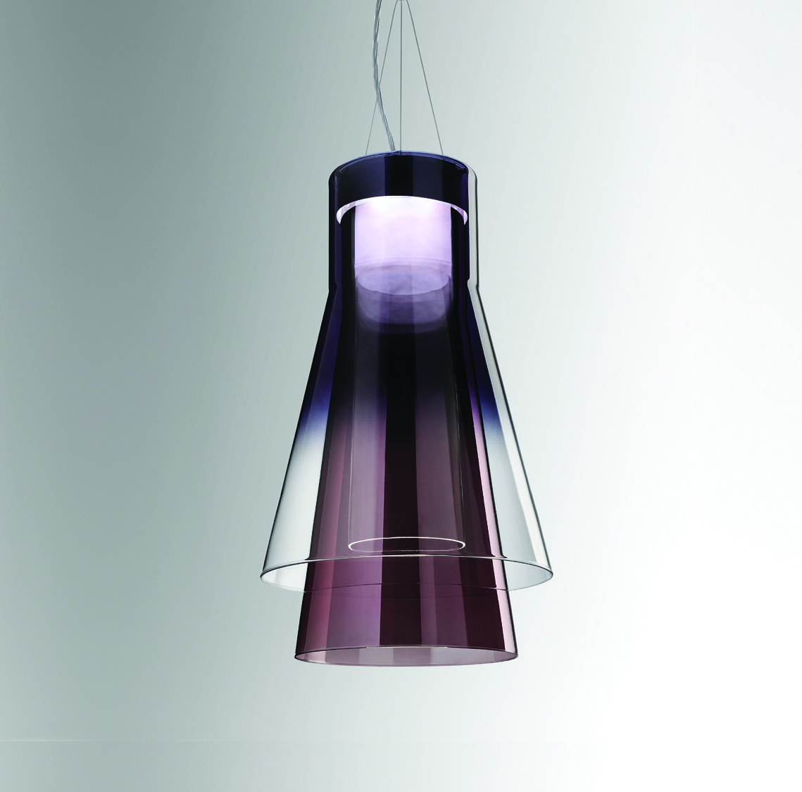 Sorretta allo stesso cavo che le fornisce energia, appesa a rosone, infissa in orizzontale, nella sua serie più piccola amplia la genealogia di un progetto capace di ridefinirsi a partire da costanti fisse fino a trasfigurare in nuovi e coerenti progetti una tradizione di disegno e qualità di preziosa lavorazione del vetro all’altezza di interpretare con efficacia l’attuale società.