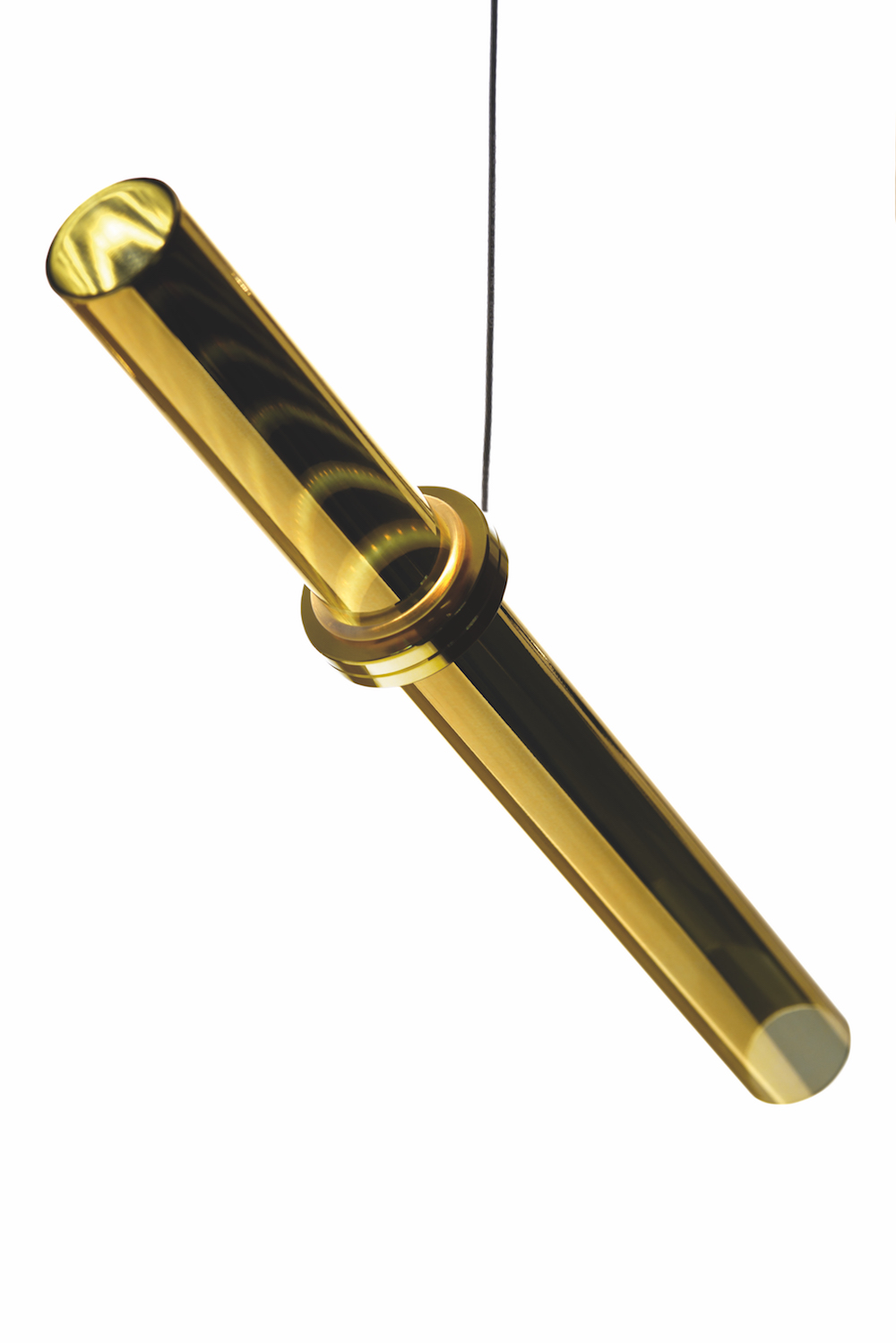 IXI-O è una lampada costruita dalla luce riflessa. Una luminosità preziosa disegnata attraverso la contrapposizione tra la sorgente luminosa, un piccolo anello ancorato a soffitto senza evidenza, e le brillanti aste in cristallo capaci di riverberare la tipicità di una luce che trae forza dall’urto con le bacchette sospese in equilibrio.