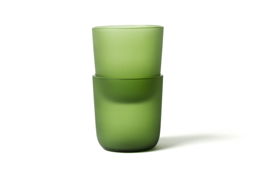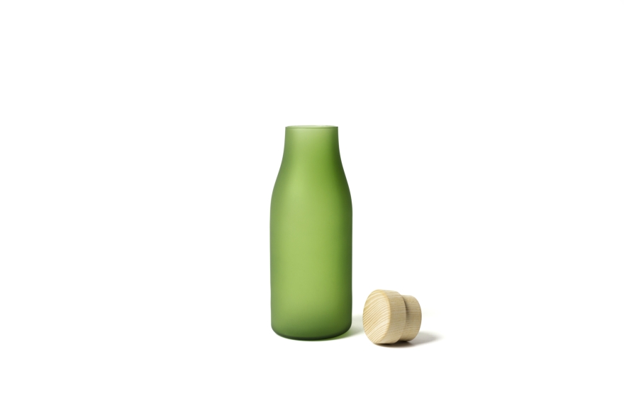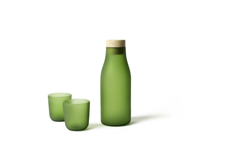 Disegnato da Massimo Barbierato il set si compone di una bottiglia e di un bicchiere in vetro soffiato che sembrano essere stati arrotondati e resi soffici dal movimento del mare che ne poi ha resa opaca la superficie esterna. Come i vetri ritrovati sulla spiaggia dell’isola di Crevan, nella laguna di Venezia.