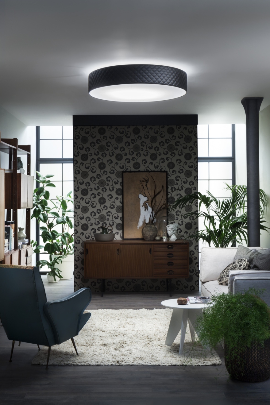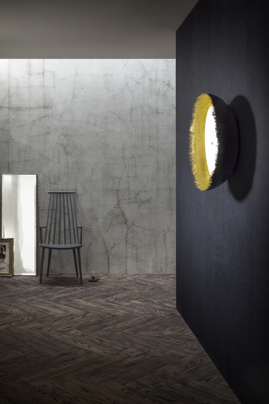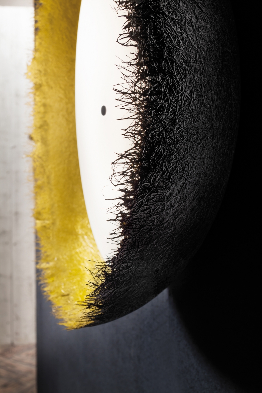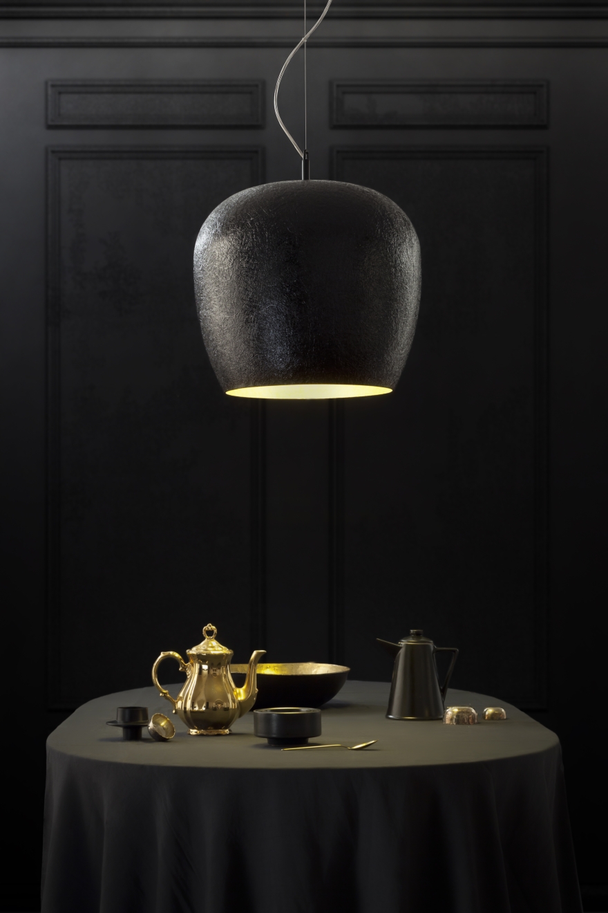 Completa le novità Lucente 2015, la collezione Egida che si ispira allo scudo mitologico greco di Zeus, da cui il suo nome. Sempre in fibra di vetro ma questa volta applicata con un effetto sfrangiato, ogni lampada diventa così un pezzo unico. Disponibile nelle versioni: sospensione, plafoniera ed applique. Le finiture sono nera o bianca opaca all’esterno e foglia oro o argento all’interno. Diffusore in PMMA opale e sistema di illuminazione LED.
