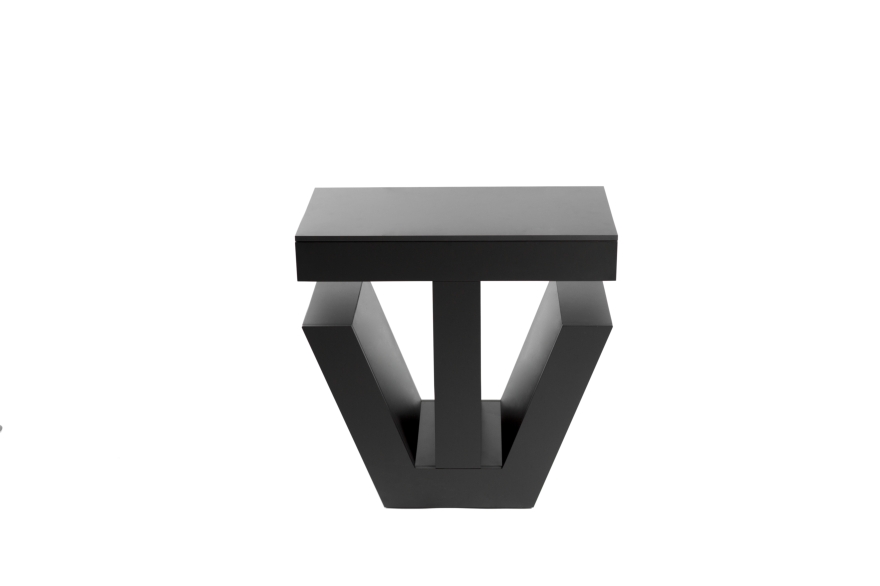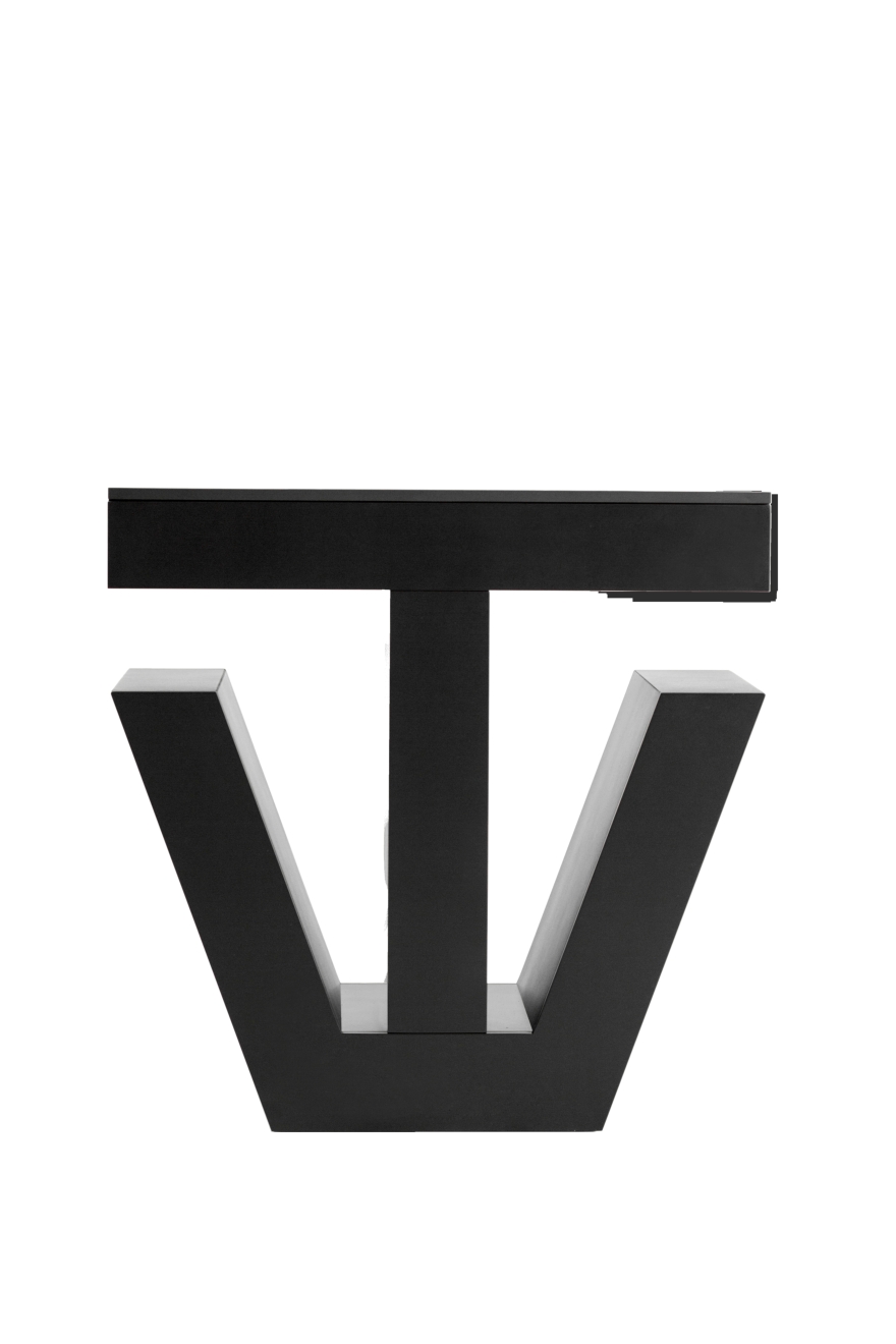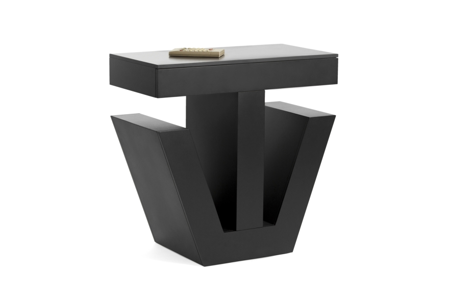 Sul piano superiore si appoggia il tele-visore, nello sportello centrale si posizionano il decoder e il lettore DVD, mentre la V che forma le ali laterali, può contenere giornali e riviste. Nella parte inferiore sono posizionate le ruote per poterlo muovere.