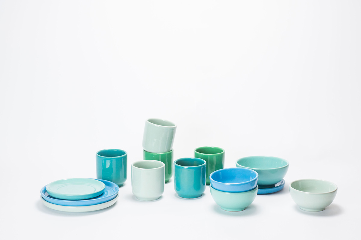 Il set è composto da una serie di diversi oggetti: il kolshi, il piatto, bicchieri, ciotole e filtri di cotone. Ogni elemento è realizzato in collaborazione con artigiani di Deruta, in Umbria.