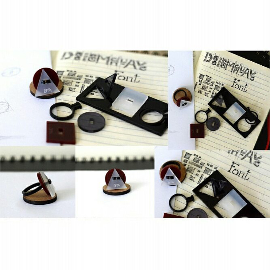 Divertente e sfizioso anche il packacing: una scatolina in plexiglass nero in cui l’anello viene riposto smontato, per divertire il cliente a montarlo in autonomia, chiusa da un coperchio in plexiglass trasparente con logo DesignManuAle inciso.