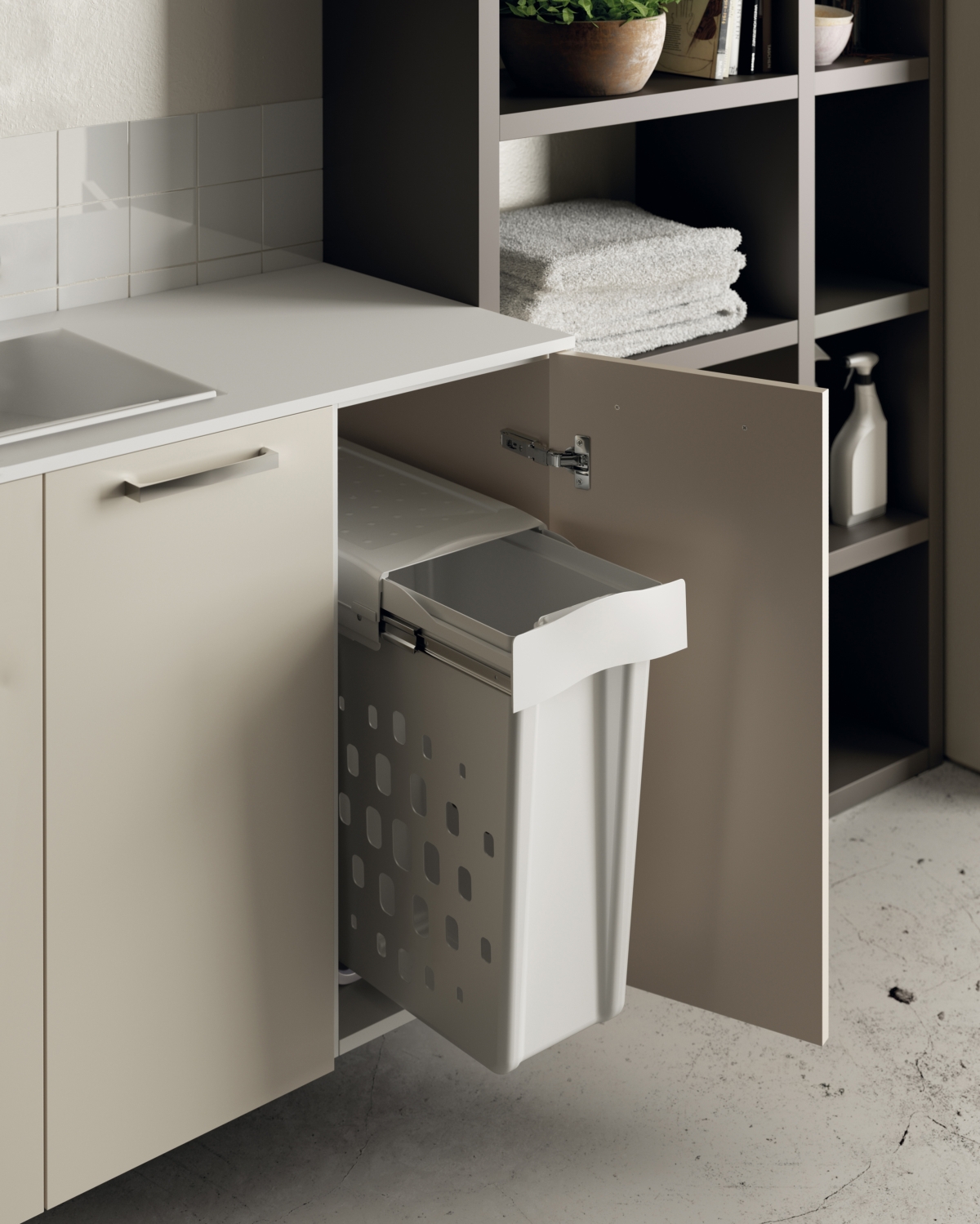 Attrezzata, ordinata e organizzata: Laundry Space, disegnata da Idelfonso Colombo, è prima di tutto un sistema completo e funzionale, perché ottimizza lo spazio a disposizione assicurando assoluta comodità e vivibilità della zona lavanderia o del bagno. Un’ampia gamma di soluzioni, tra cui piani d’appoggio, stendino, asse da stiro, carrelli estraibili, armadi contenitivi, pensata per creare la perfetta area laundry.
