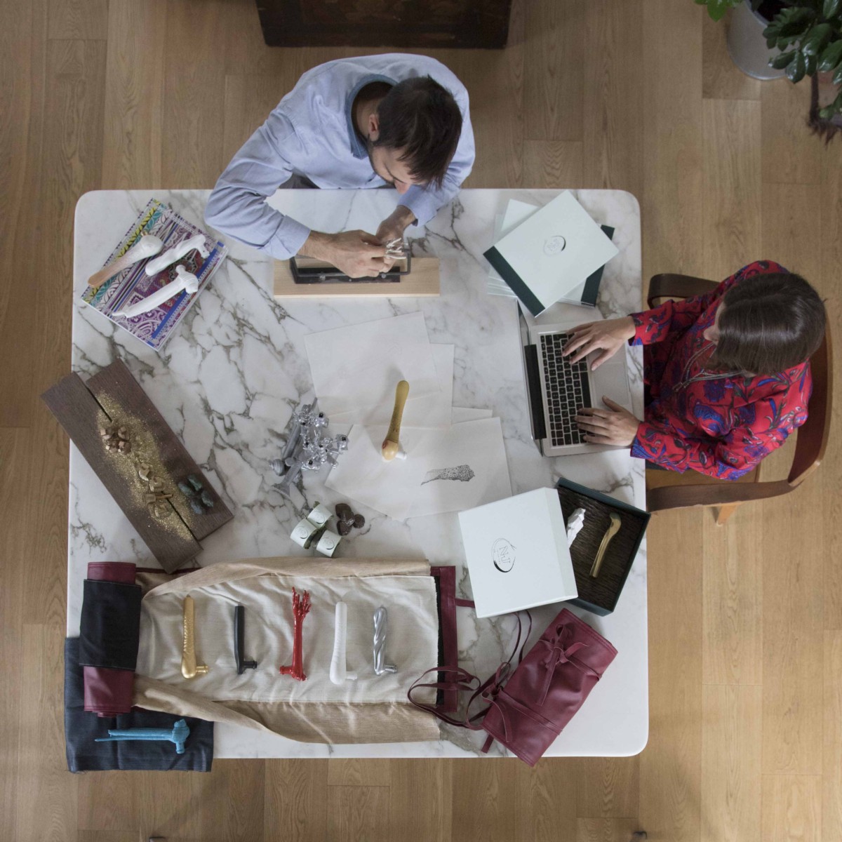 Nicole Valenti e Jacopo Candotti, danno vita a Firenze ad NJ interiors, un laboratorio homemade di sculture funzionali, oggetti di uso quotidiano che uniscano l’aspetto pratico a quello scultoreo.