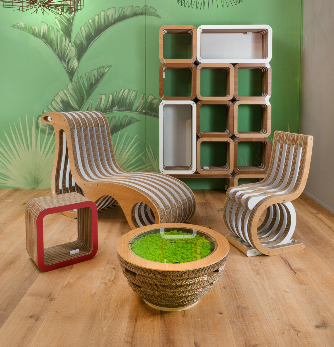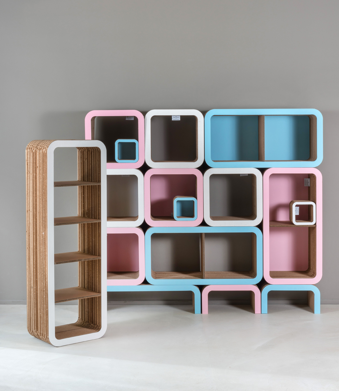 Sempre coerente con sé stesso, il sistema in cartone riciclabile Moretto è il grande protagonista di questo cambio di look grazie alla sua versatilità. Moduli di varie dimensioni senza spigoli vivi che possono essere appoggiati con semplicità uno sull’altro per creare infinite combinazioni dall’impatto visivo sorprendente, grazie a versioni-colore e texture sempre nuovi. Ecco dunque debuttare i cromatismi di un cocktail tricolore o l’omaggio alle ville della riviera in rosa e azzurro. Un’esplosione di nuovi tonalità – tenui o decise – che ci parlano del nostro DNA fra passato e futuro.