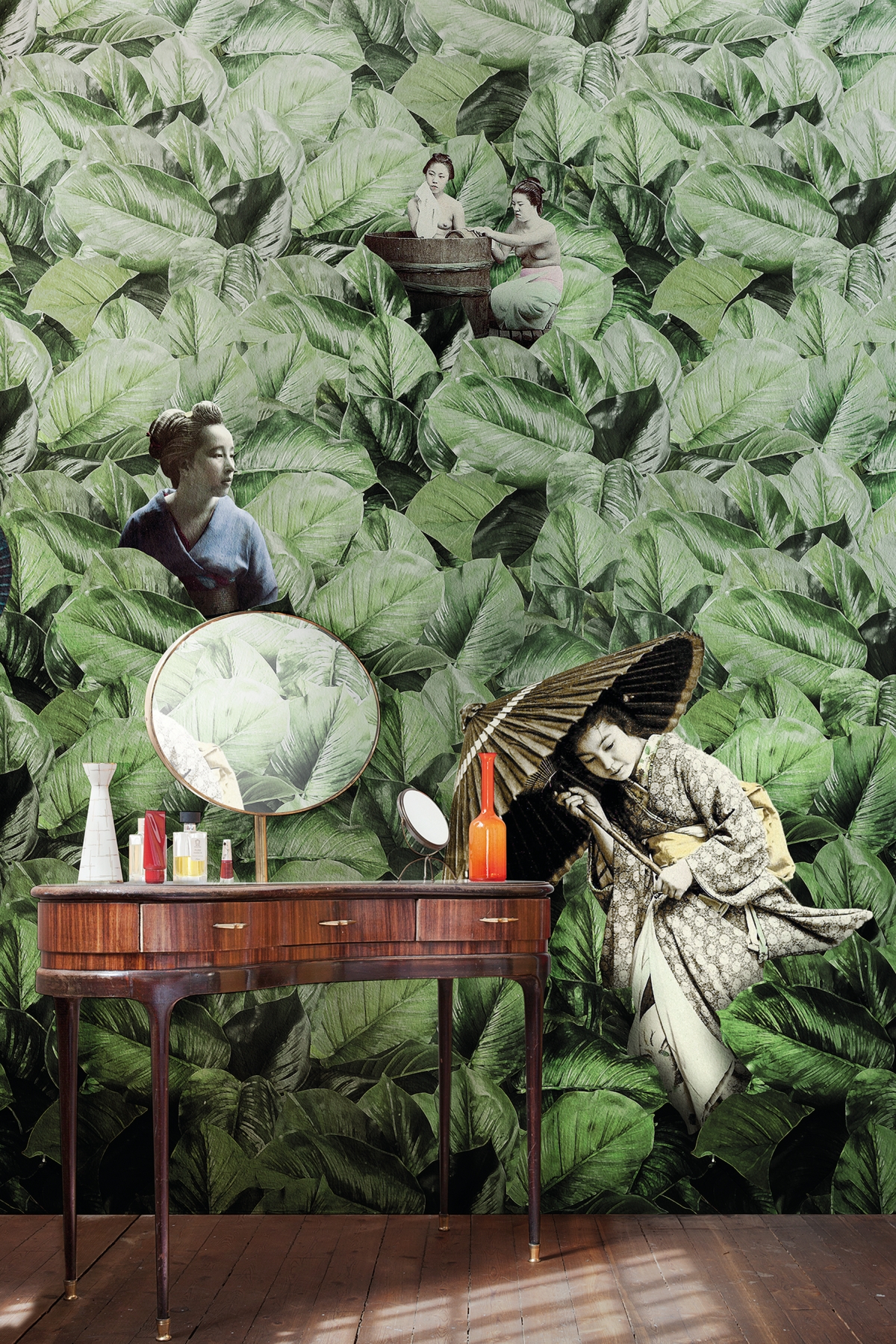 Declinazione grafica del termine che in Giappone sintetizza bellezza ed eleganza, Masami unisce l’eterna eleganza delle donne ritratte nelle albumine dell’Ottocento con la lussureggiante vegetazione del territorio nipponico meno conosciuto.