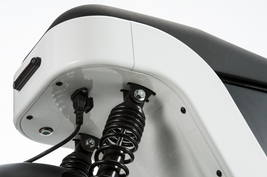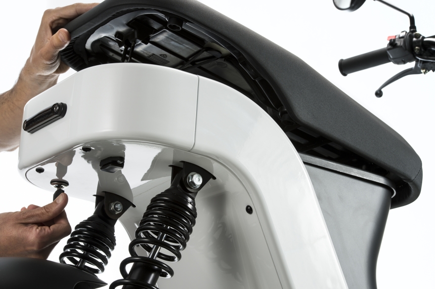 ME è anche il primo scooter elettrico realizzato in Sheet Moulding Compound – SMC, un composto di resine in grado di rendere il telaio particolarmente resistente, elastico e, soprattutto, leggero: lo scooter completo di batterie pesa solamente 90 chili, ben al di sotto della media dei suoi concorrenti! Una caratteristica che influisce sull’autonomia del mezzo: per ogni ricarica della batteria agli ioni di litio (un “pieno” dura 5 ore con la presa domestica e costa in media meno di 2 euro) ME percorre 80 chilometri, più 10 di “riserva”.