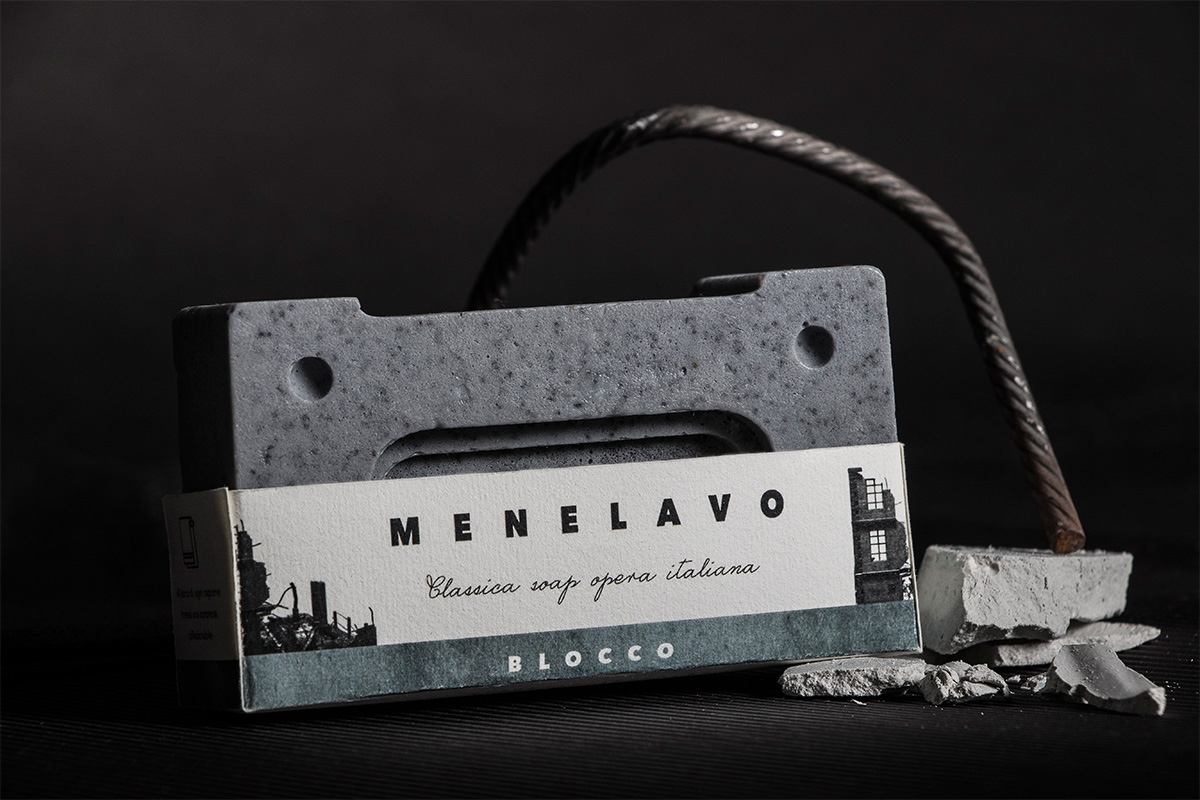 MENELAVO è una famiglia di quattro saponi a forma di mattone disegnati per sensibilizzare l’italiano sul tema dell’abusivismo edilizio, riflettendo in modo sarcastico su come esso stesso a volte “se ne lavi le mani”.