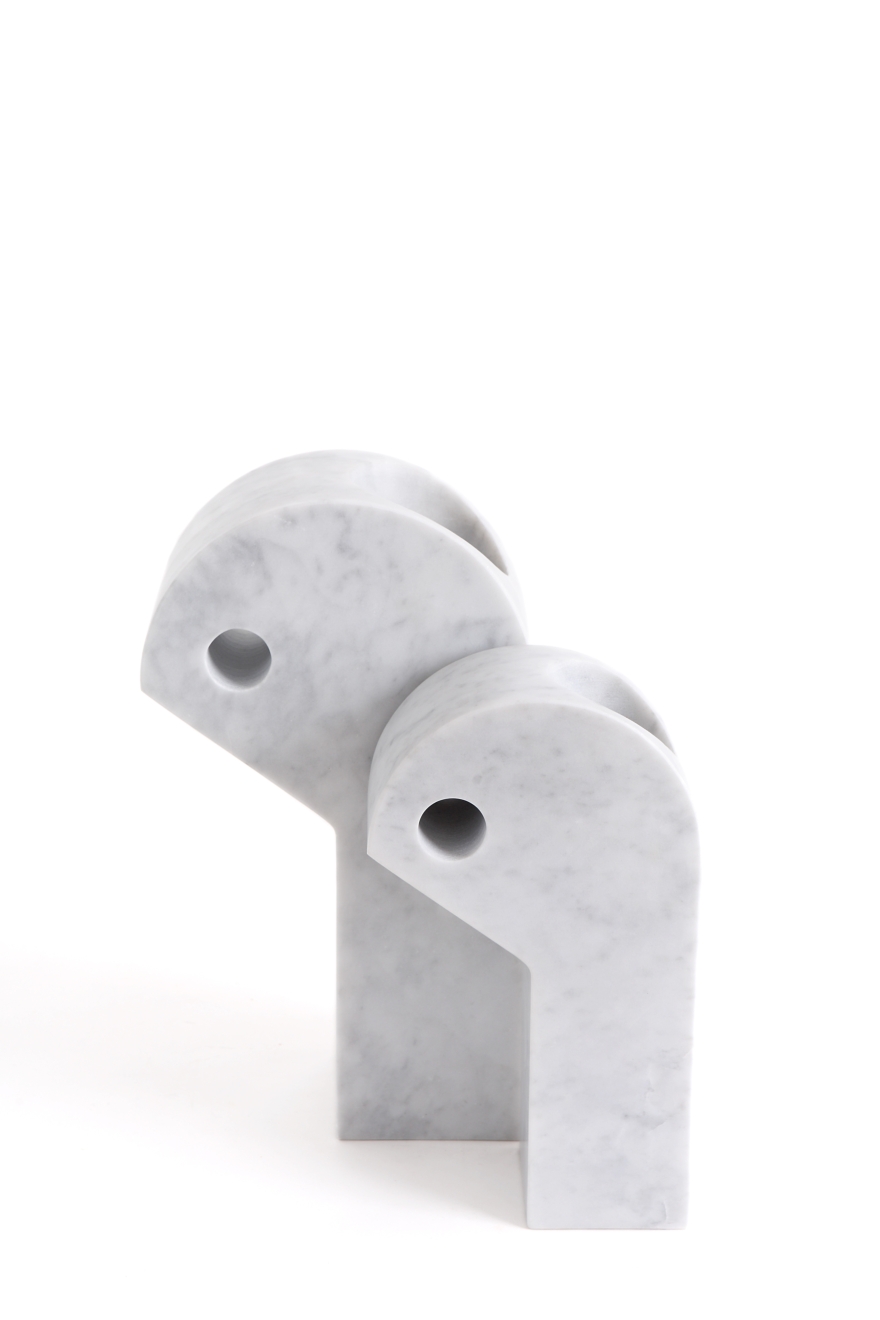 OMINI, vasi in marmo imponenti per volume, ma non troppo pesanti perché interamente scavati per contenere i fiori, che ricordano il profilo stilizzato di un uomo. Realizzati volutamente solo in marmo bianco di Carrara per la sua eleganza intrinseca e come omaggio all’italianità nell’anno di Expo 2015.