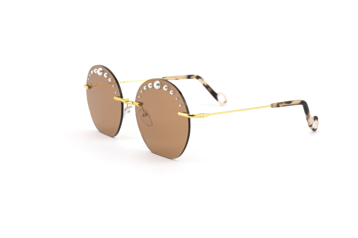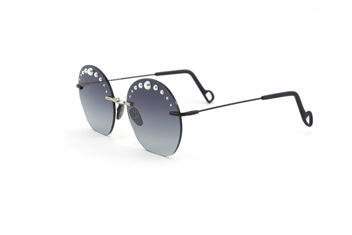 L’occhiale di Dadà è un vero e proprio compendio dell’arte manifatturiera dell’eyewear italiana. Tante piccole perle di differente dimensione poste in successione sul cigliare, applicate su una montatura glasant, dalle lenti nere o rosè, sono tenute insieme da un ponte in metallo e aste con terminale in acetato. Iper leggera ed elegante, disponibile nei due colori simbolo della seduzione, Kiki è un elogio all’unicità e alla femminilità, discostandosi dalle idealizzazioni classiche, in pieno spirito dadà.