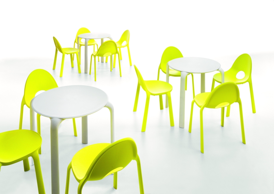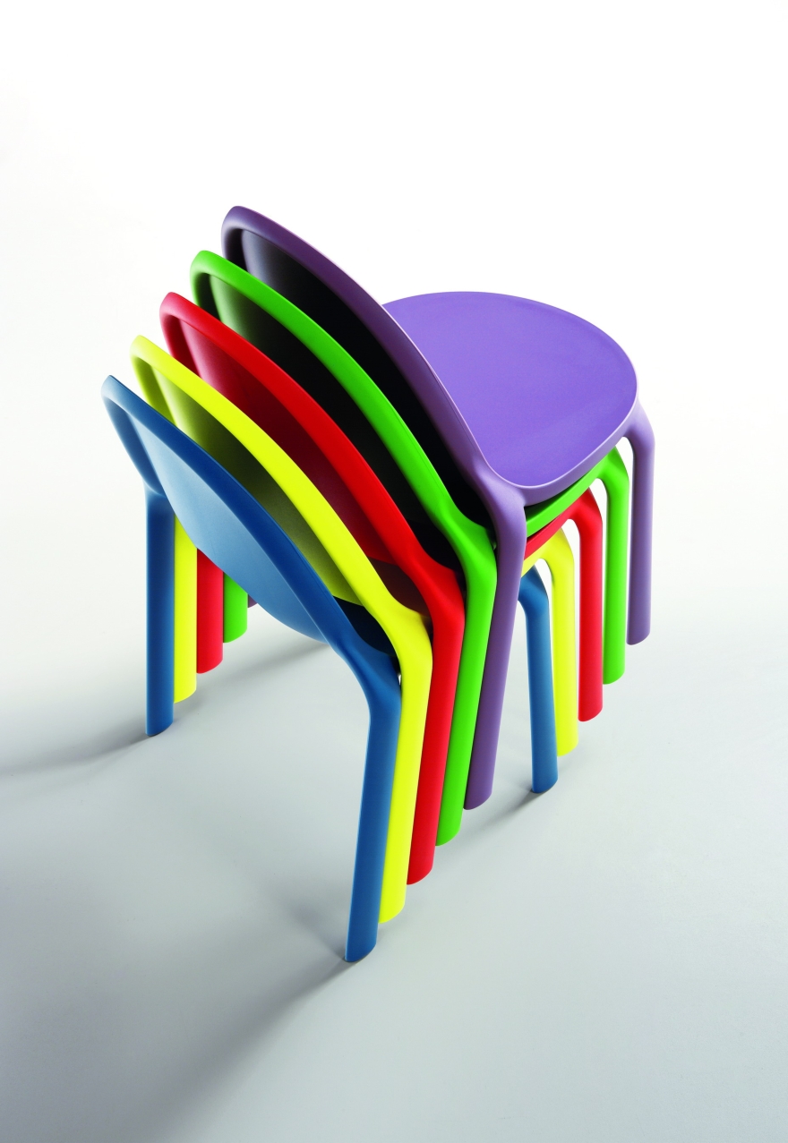 Sedia DROP, versatile, impilabile, colorata e dal design accattivante e fresco, ma soprattutto una sedia riciclabile al 100%.