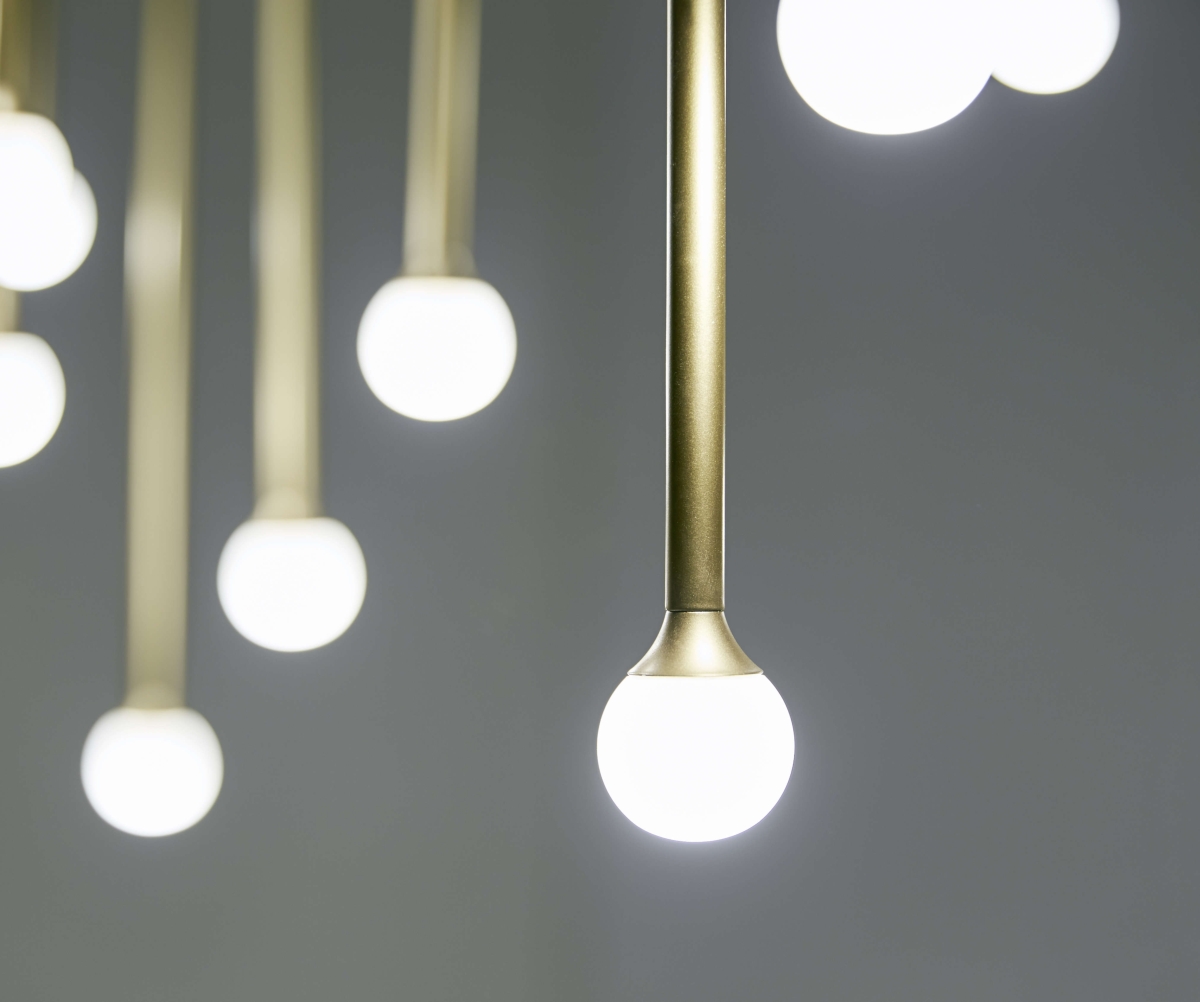 Storm è la nuova lampada a sospensione disegnata dallo studio Bartoli Design, è caratterizzata da un esile stelo metallico all’estremità del quale si trova la sorgente luminosa racchiusa in un globo opalino. Il fulcro del progetto sta proprio nel rapporto armonioso tra lo stelo, nelle sue varianti con finitura grafite, rame e oro satinato, ed il bulbo che diffonde la luce emessa dalla sorgente LED.