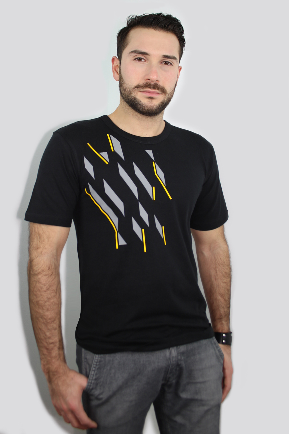 T-shirt design fatto di tanta, tanta geometria astratta. Da Milano si affaccia al mondo del casual wear un nuovo marchio di t-shirt destinate a un pubblico che desidera temi grafici realmente alternativi alla tradizione. La nascita di Znak!® avviene in una fase in cui, nella moda, tutto è lecito, tutto è cool e tutto è up-to-date. In altre parole, i linguaggi interagiscono e si sviluppano in parallelo. In questa collezione tanti spunti figurativi si mescolano, ma tutti vogliono andare oltre il reale, spingendosi talvolta verso l’assurdo, sfiorando perfino l’area psichedelica…