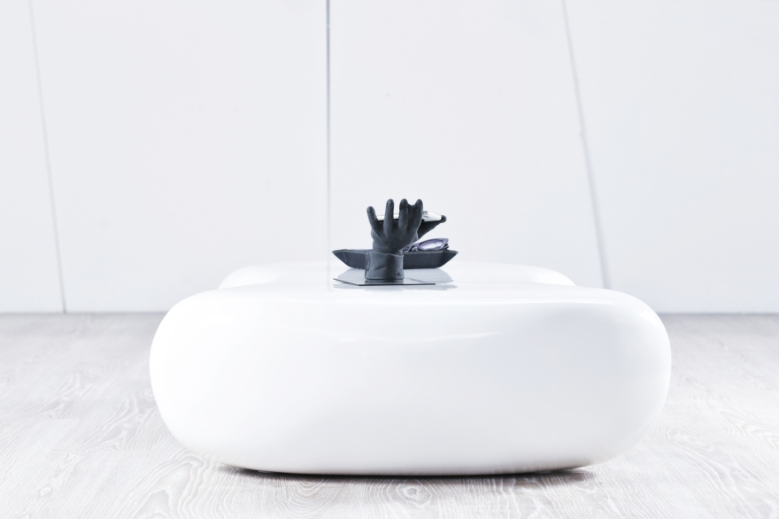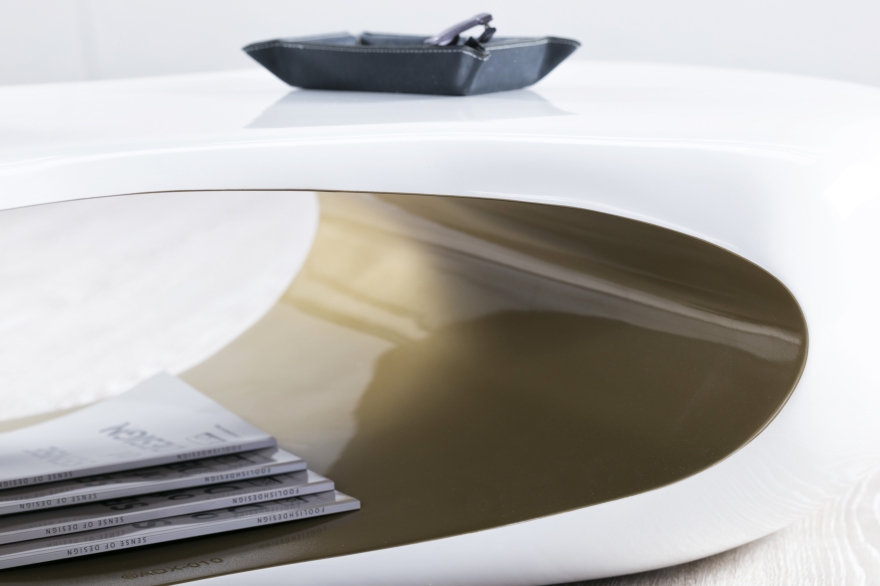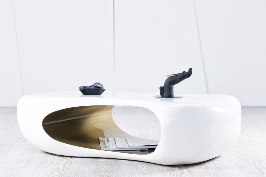Tavolino dalle forme ergonomiche e stondate in Adamantx®, prodotto da ZAD Italy.